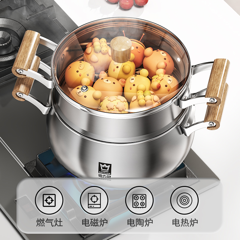 新款汤锅家用316不锈钢蒸笼屉一体成型大容量多功能锅双层蒸煮锅