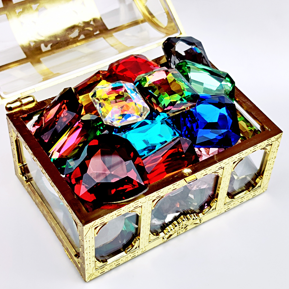 儿童七彩宝石玩具女童水晶玻璃钻石闪亮女孩珠宝饰品玻璃五彩宝石