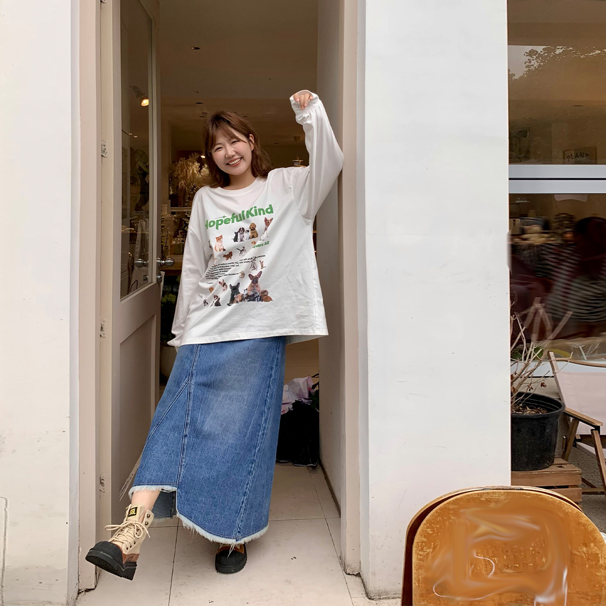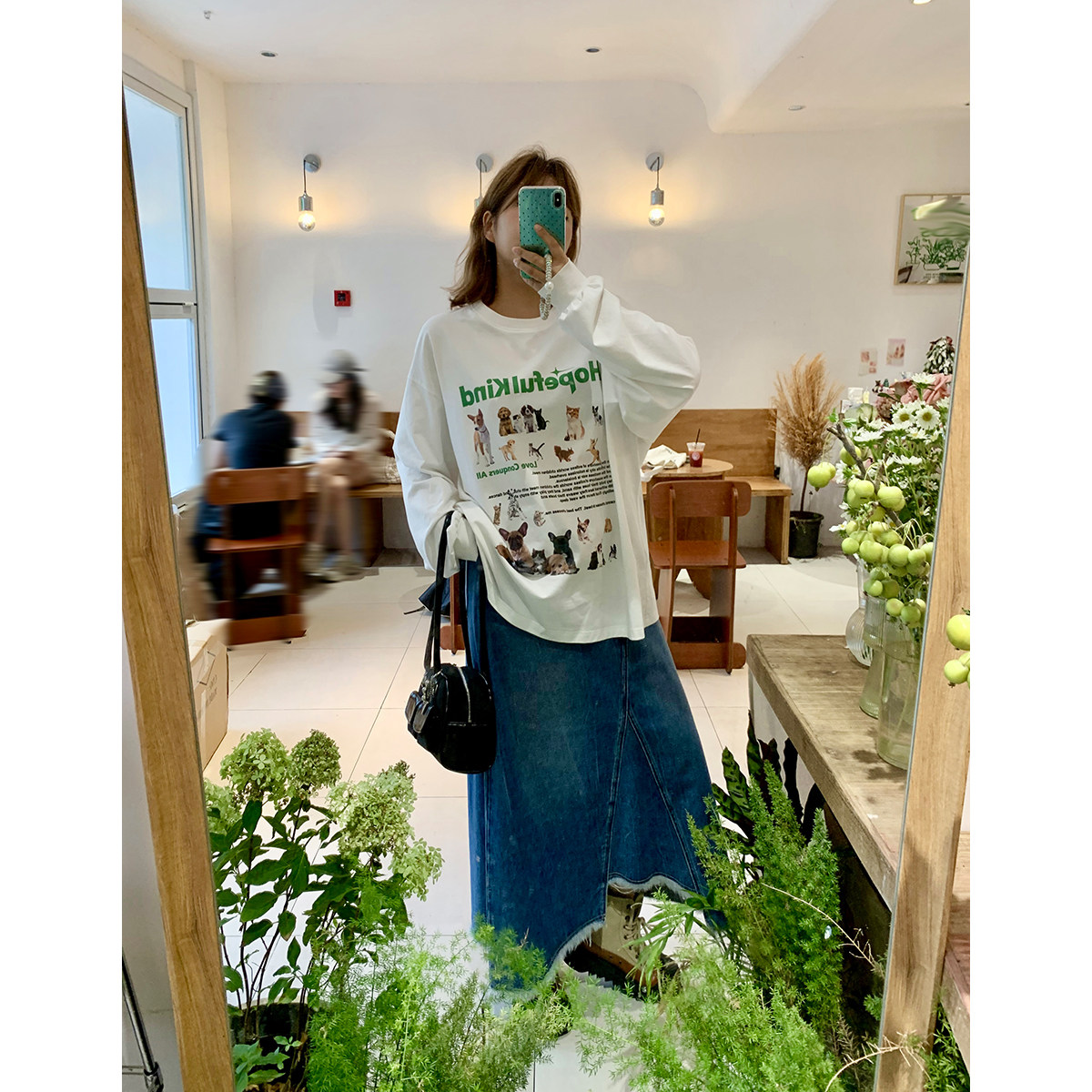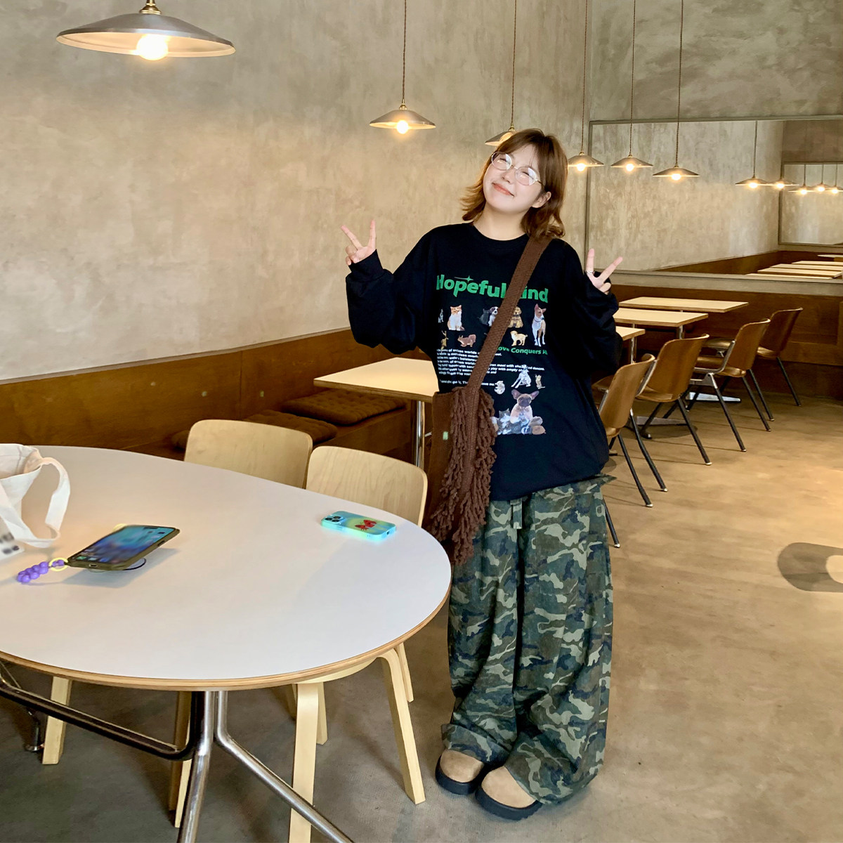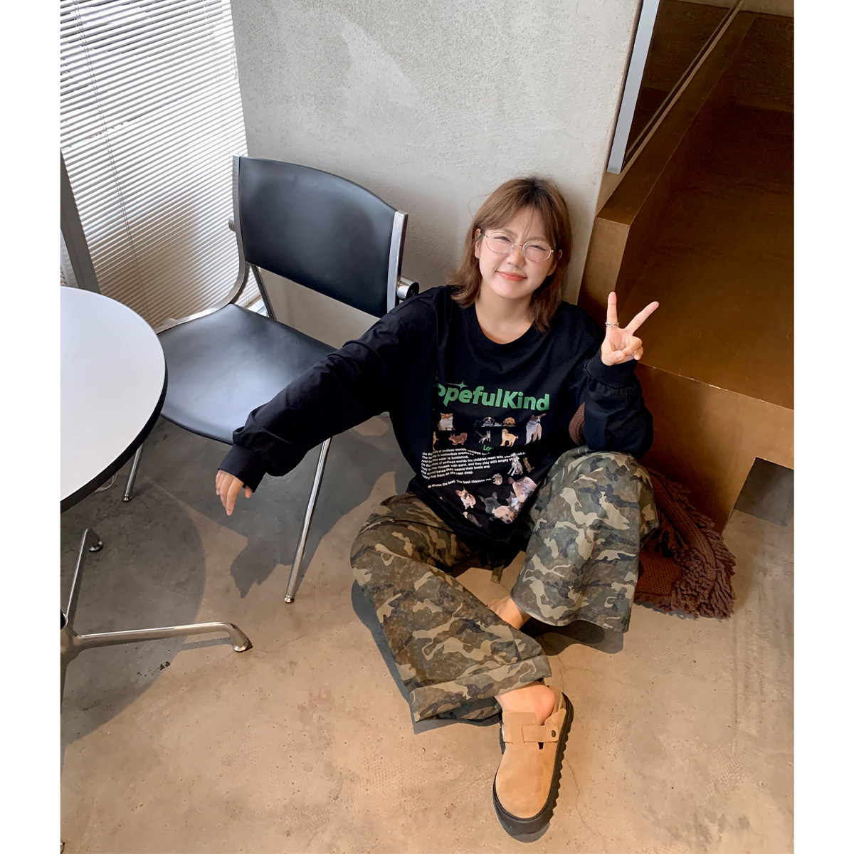 卡通印花T恤女慵懒风长袖