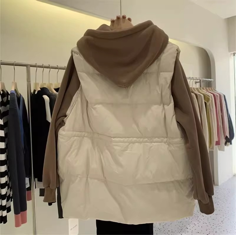 胖mm大码女装拼接假俩件连帽外套女秋冬新款设计感宽松百搭棉服潮