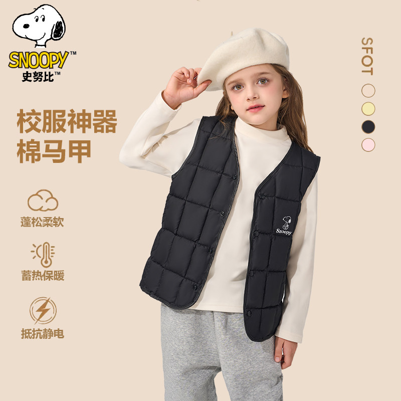 史努比黑色棉马甲儿童马甲秋冬新款多色百搭保暖背心内外可穿