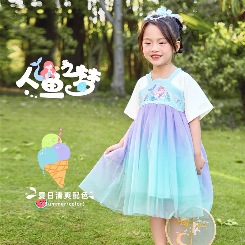 女童连衣裙夏装宝宝国风公主裙婴儿汉服小童网纱裙儿童童装夏季