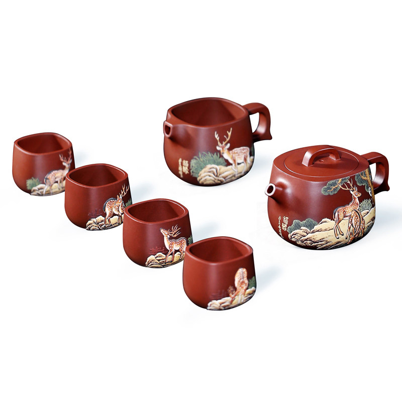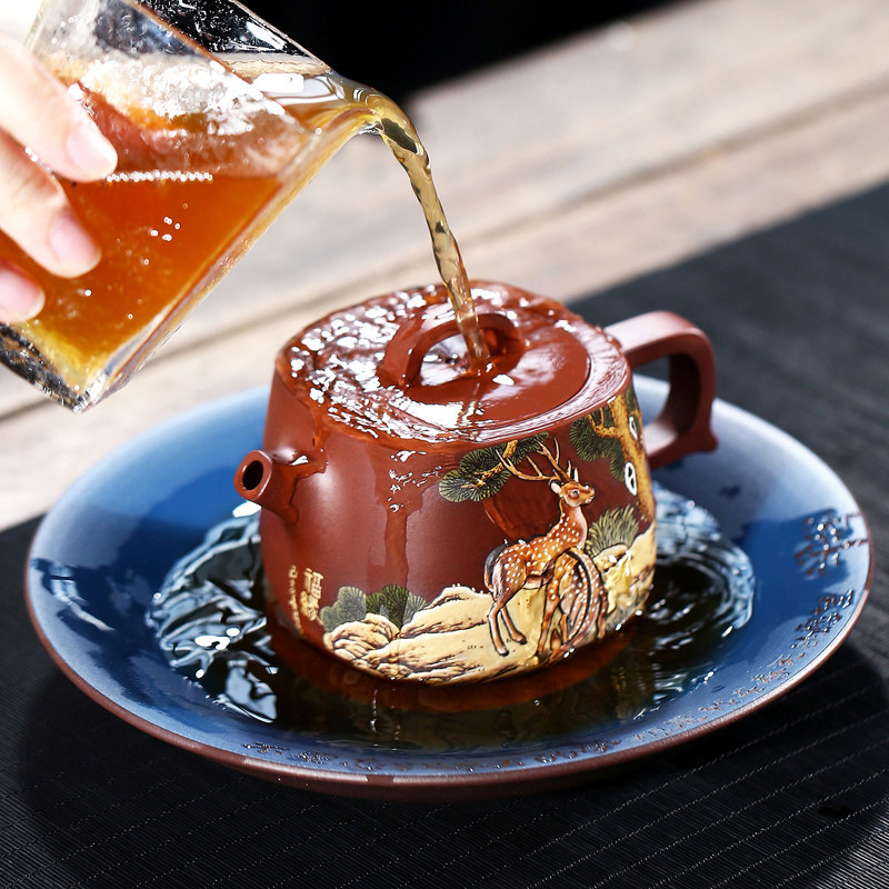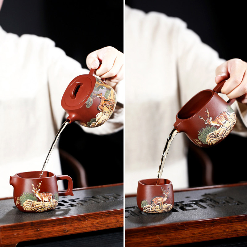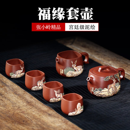 大师张小岭泥绘 宜兴紫砂壶底槽清纯全手工泡茶壶单壶功夫套装 鹿