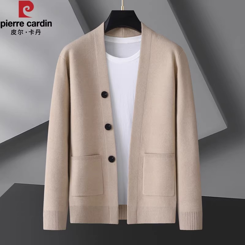 皮尔卡丹秋季男士针织衫外套休闲商务开衫毛衣加大码春秋男装线衣