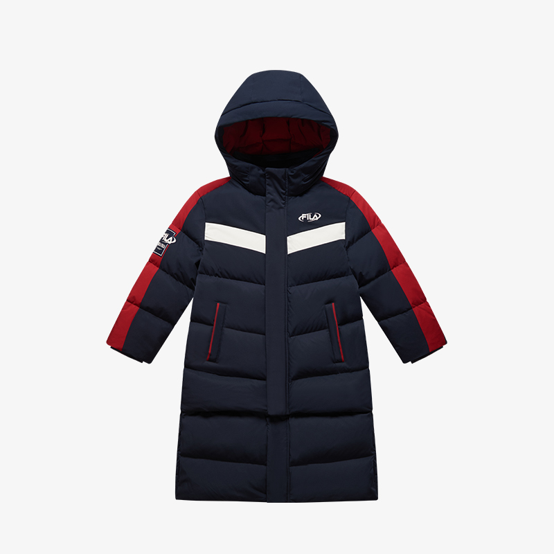 FILA斐乐童装儿童羽绒服长款2024冬季新款男童中大童保暖外套加厚