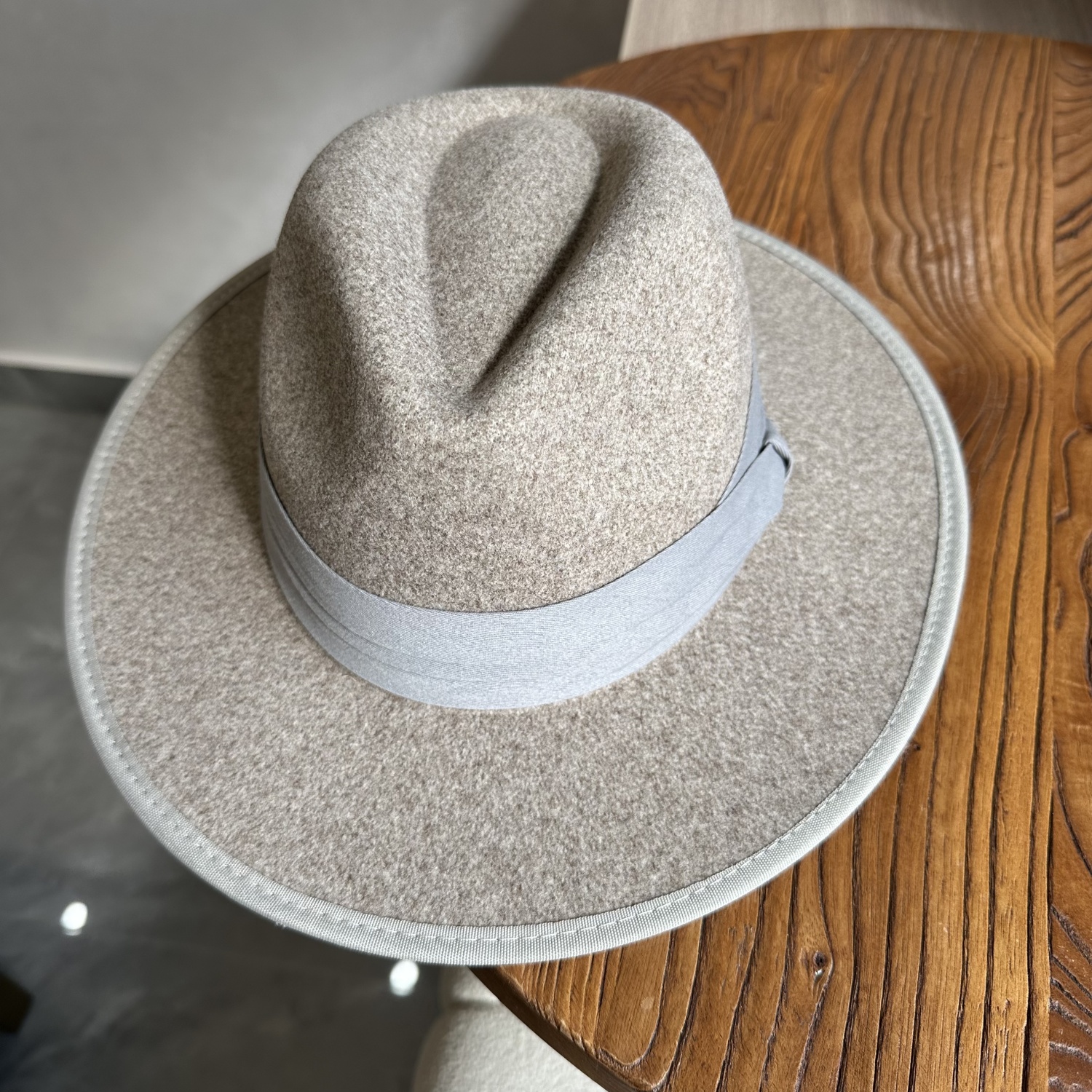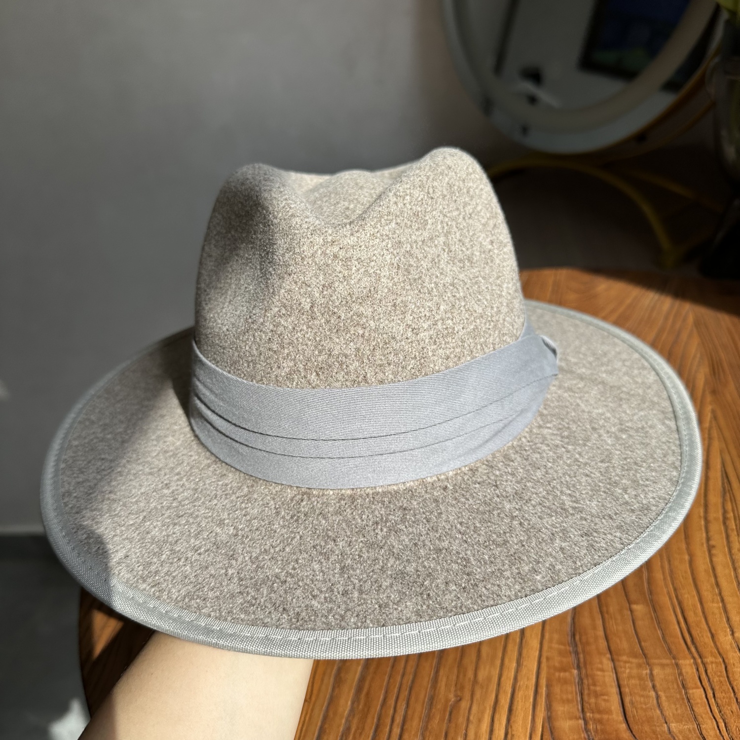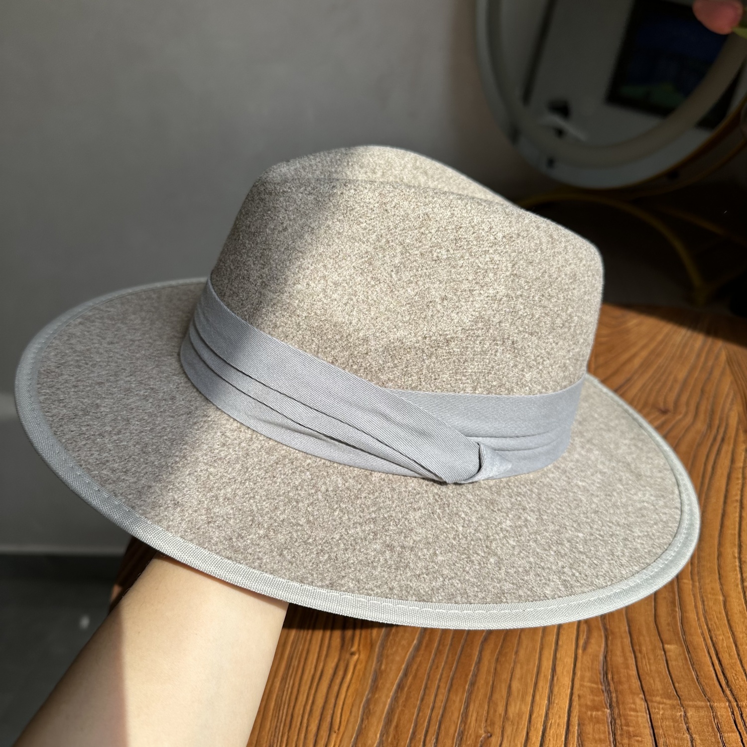 秋冬新款羊毛呢礼帽男英伦复古绅士帽子洋气灰色爵士卷边平沿帽女