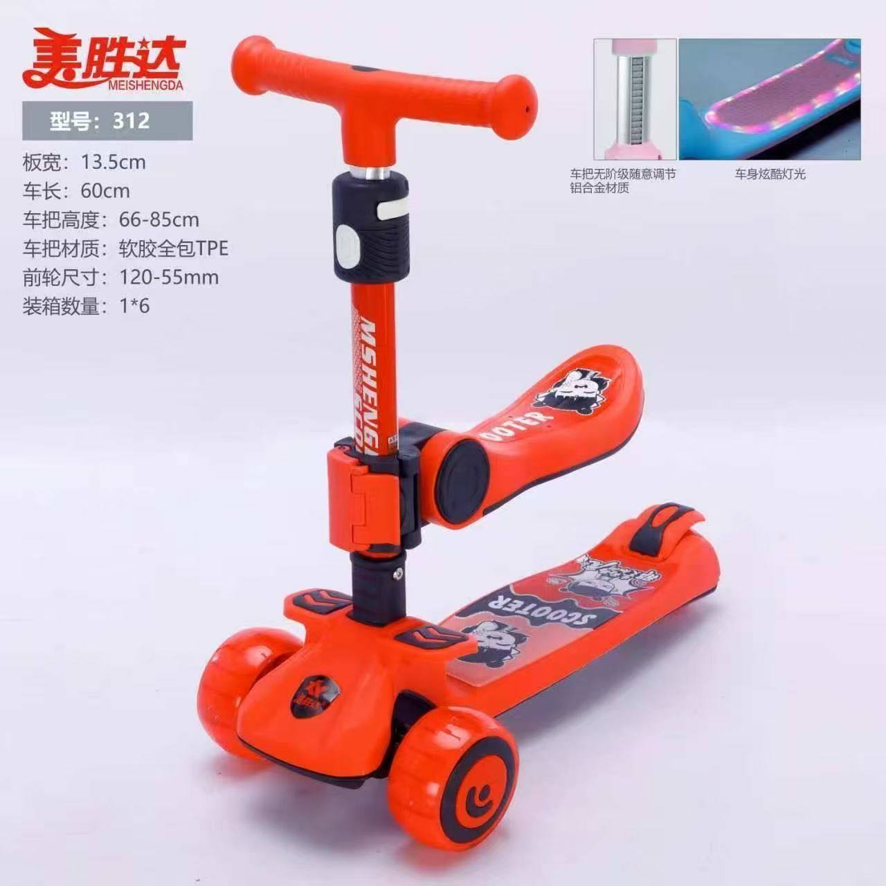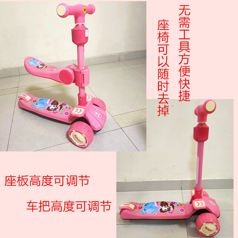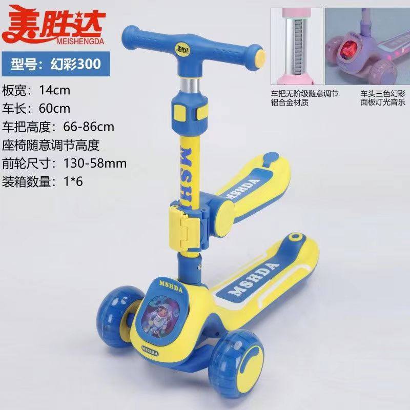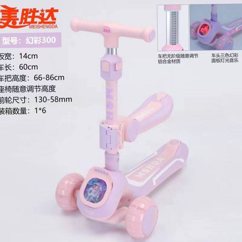 美胜达儿童滑板车三合一带音乐闪光轮可升降折叠包邮