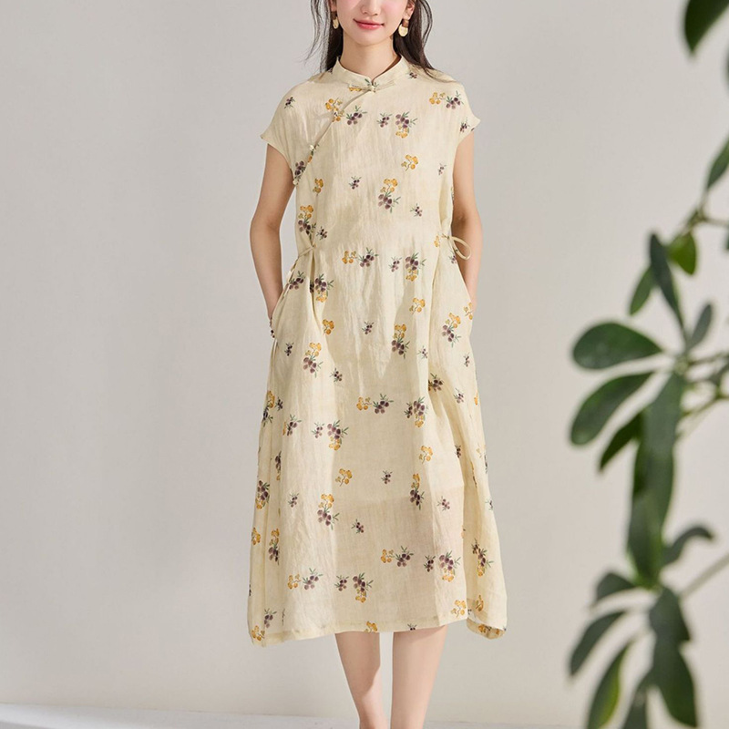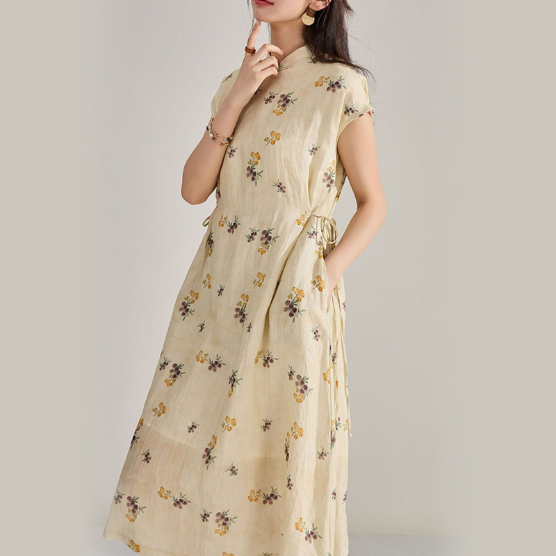 AQ499新中式盘扣立领旗袍纸样连衣裙女装系带裙子样板图