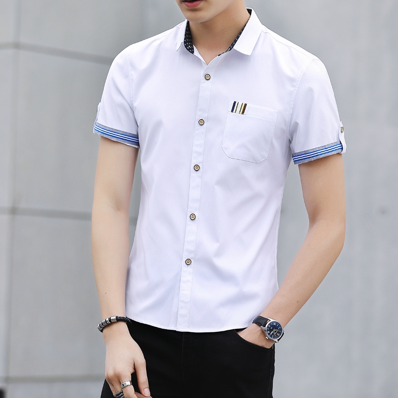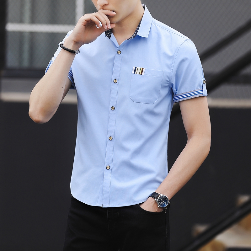男装短袖衬衫夏天新款修身韩版痞帅气衬衣休闲流行半袖免烫薄衬衣