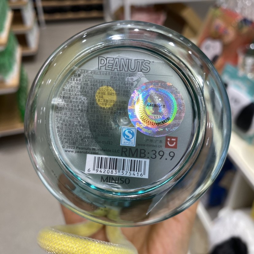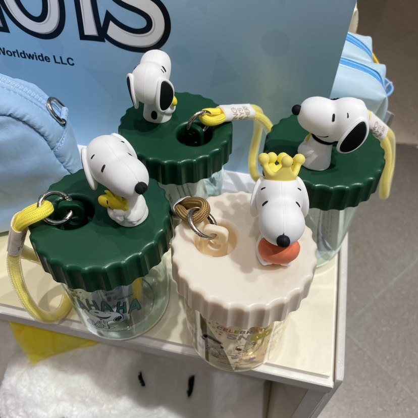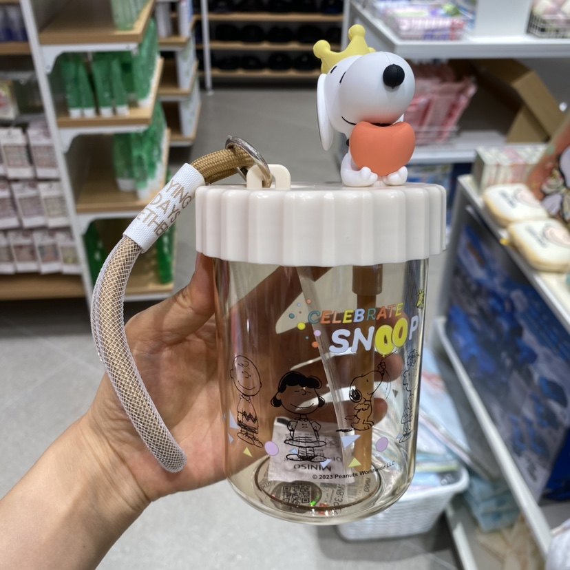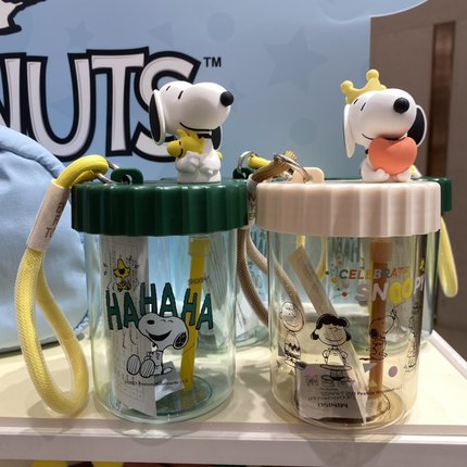 史努比生日会系列提绳吸吸乐塑料杯520ml 名创优品MINISO正品水杯