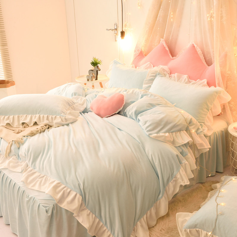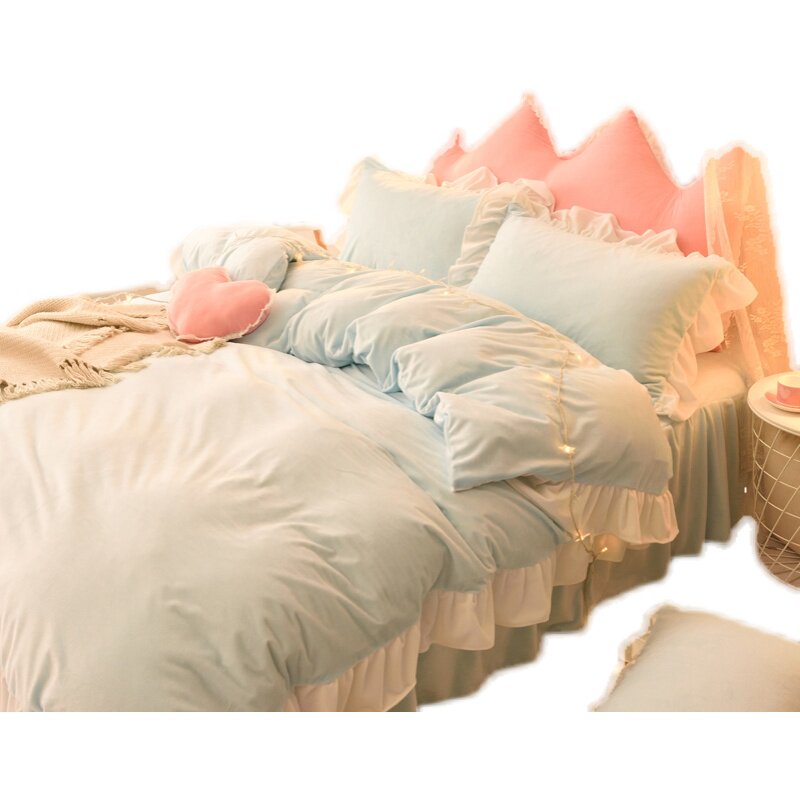冬季珊瑚绒花边被套单件四件套法莱绒双面牛奶绒加厚水晶绒单被罩