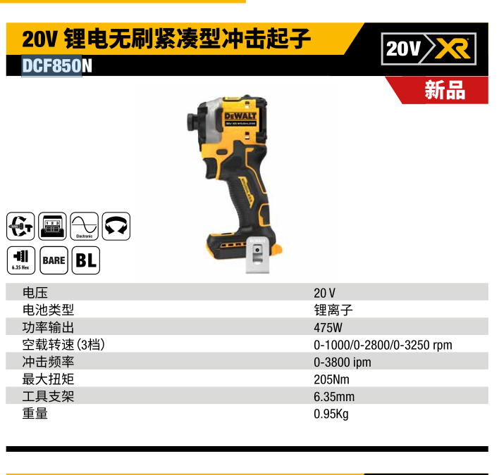 订购得伟DEWALT锂电20V冲击起子机电动螺丝批DCF850N零件维修服务