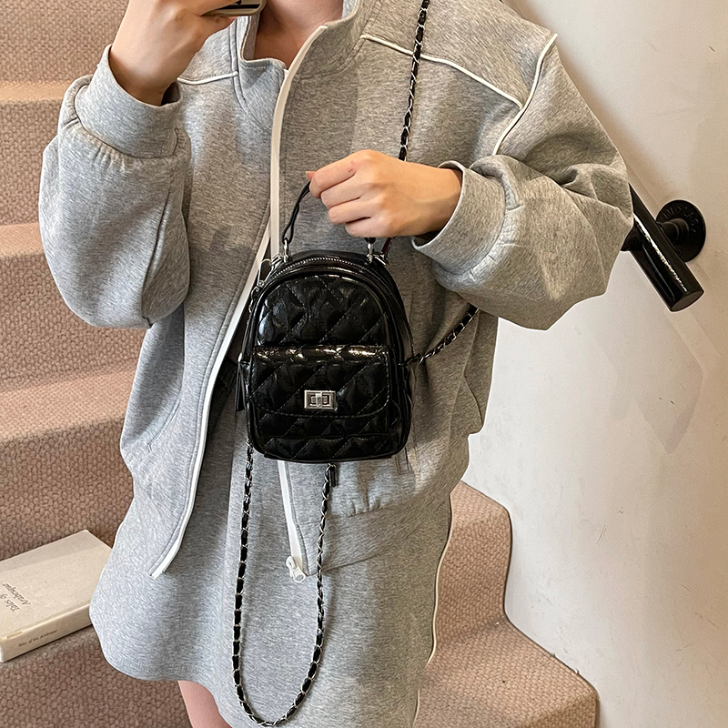 新款迷你菱格链条双肩包