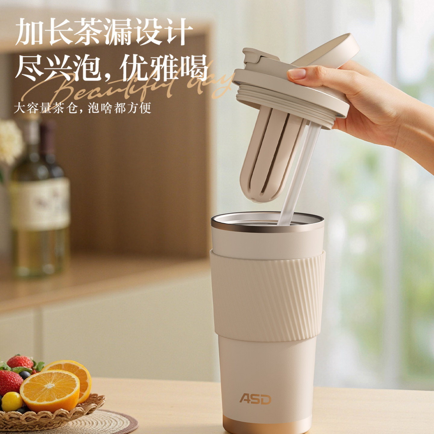 爱仕达保温杯咖啡杯女生2025新款高颜值便携吸管水杯子生日礼物