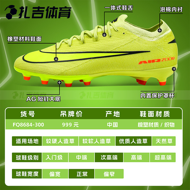 扎吉体育Nike耐克刺客16次高端AG-PRO人草比赛男足球鞋FQ8684-300