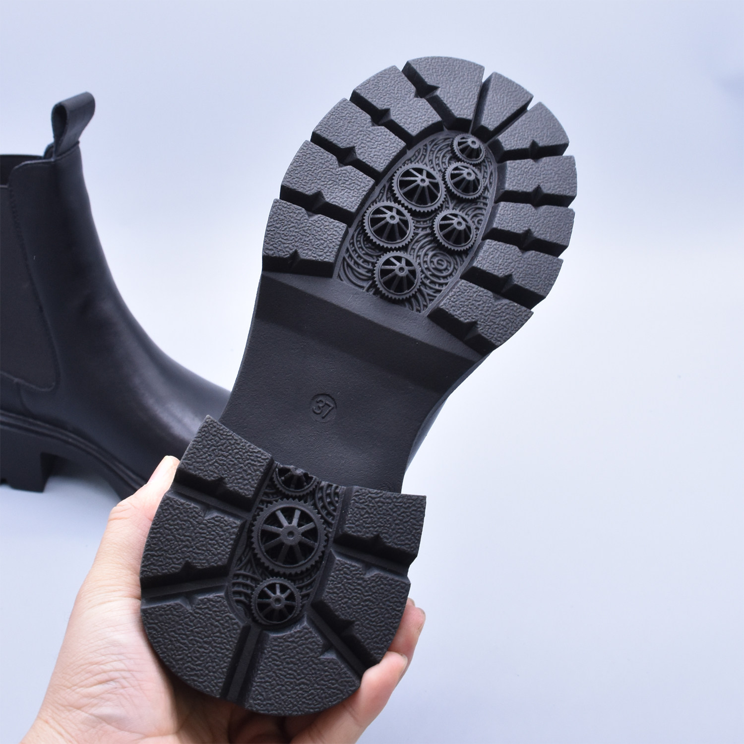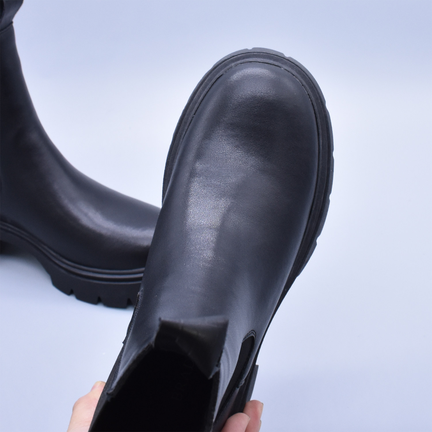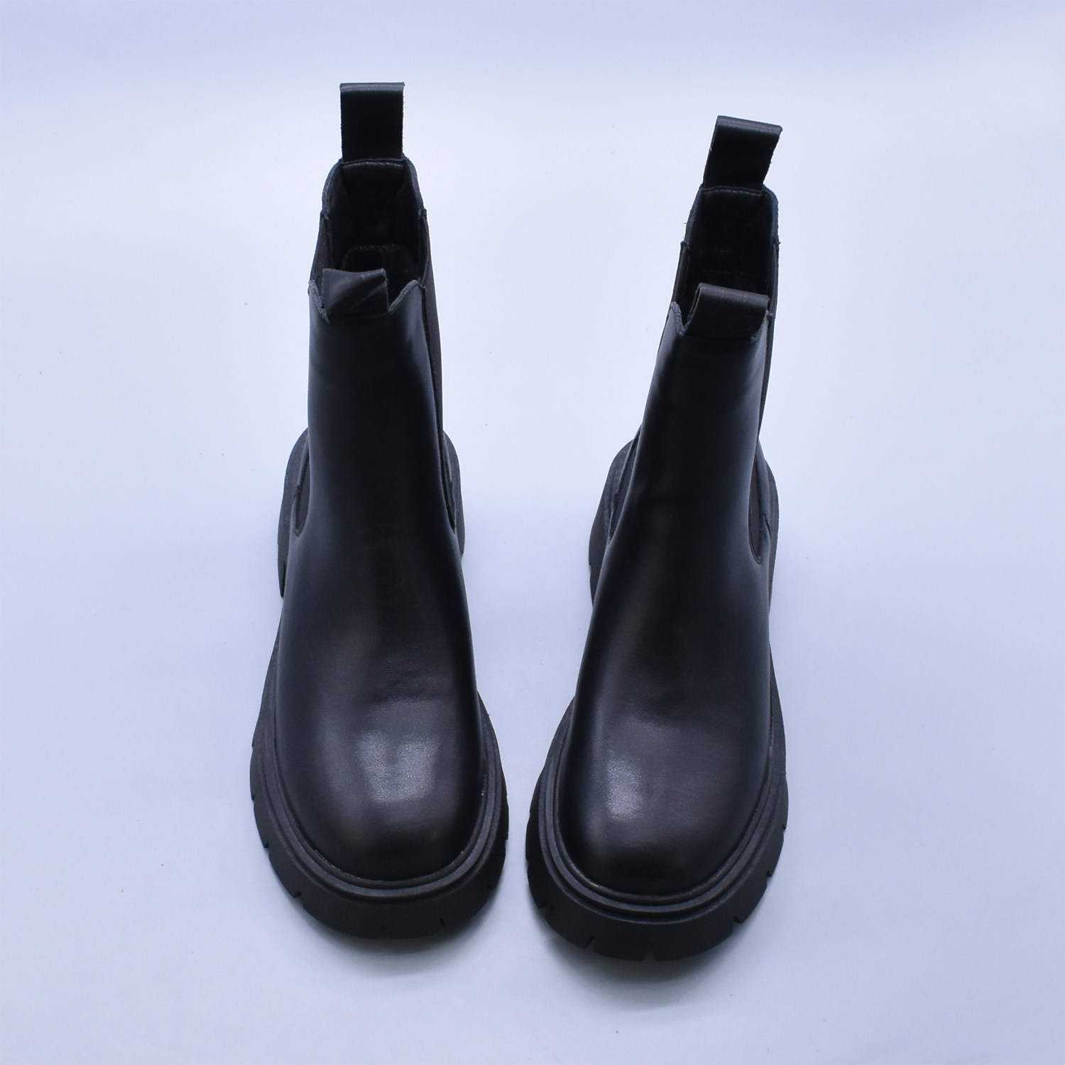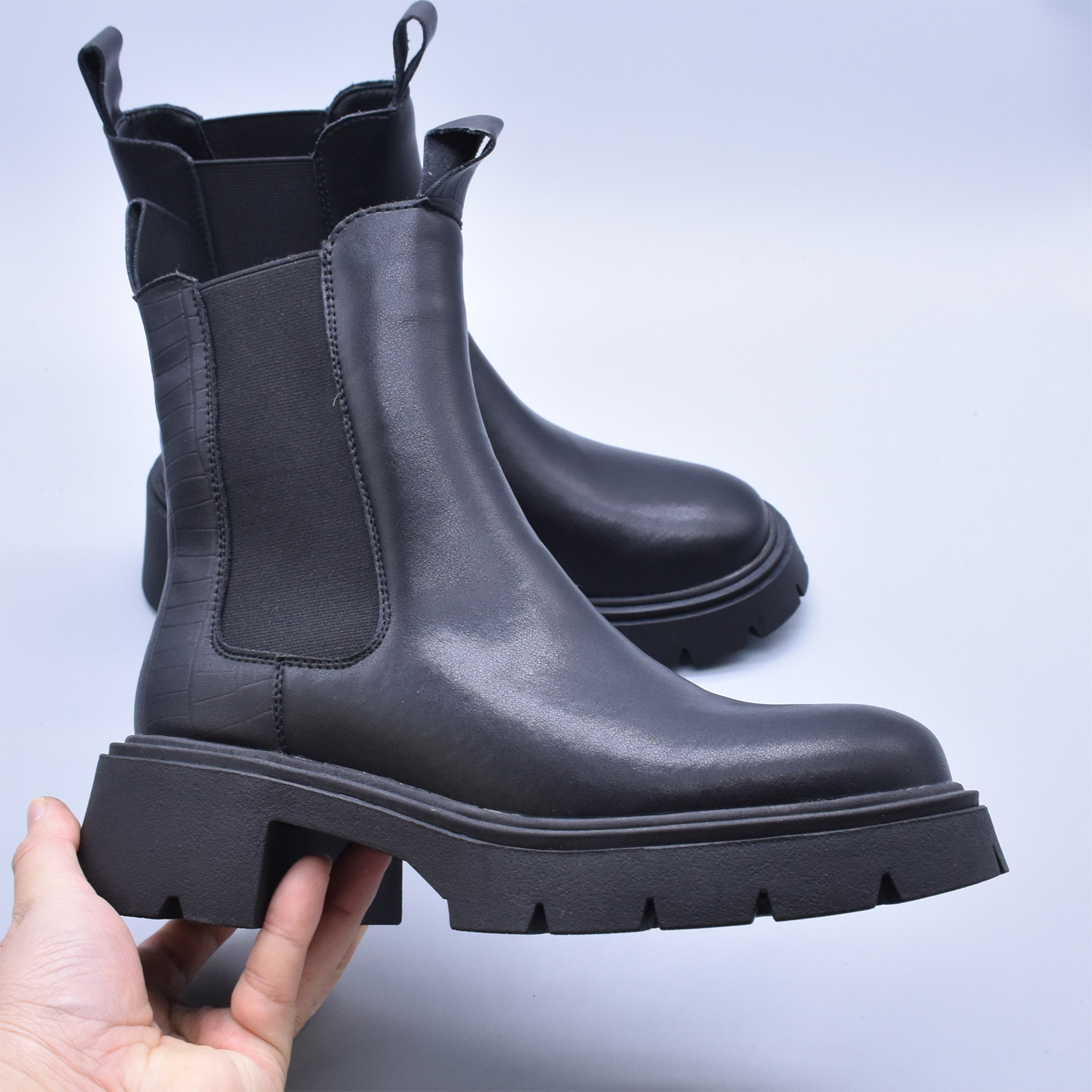 外单牛皮切尔西短靴女粗跟厚底冬季靴子爆款烟筒靴真皮休闲靴女靴