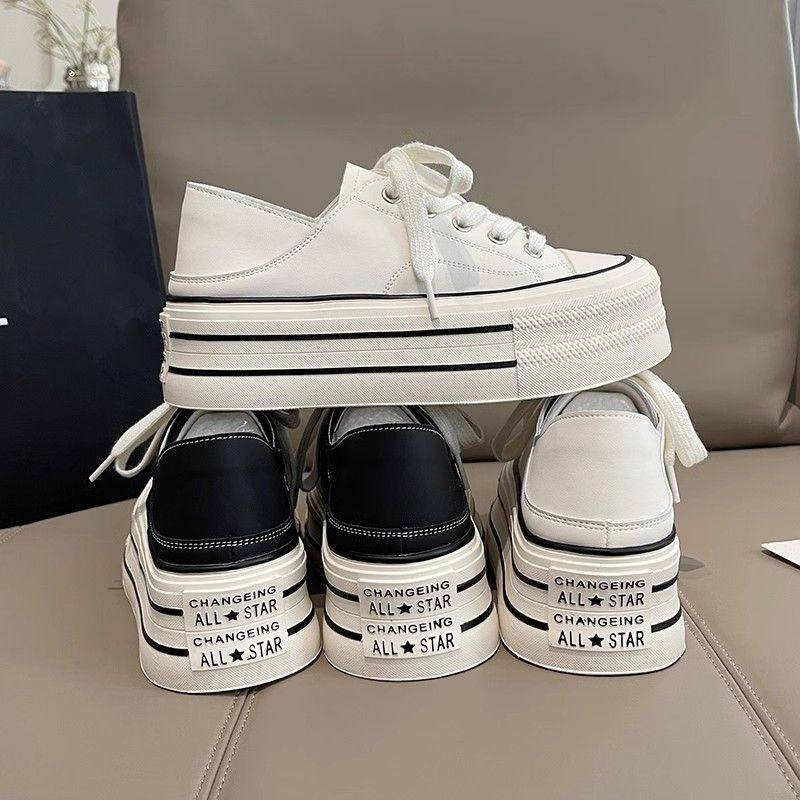 韩版2025新款春季休闲板鞋厚底女小个子两穿百搭运动休闲小白鞋子