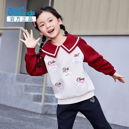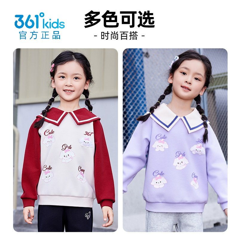 361°女童翻领卫衣印花新品2025秋春休闲衫中小童套头衫N62534301