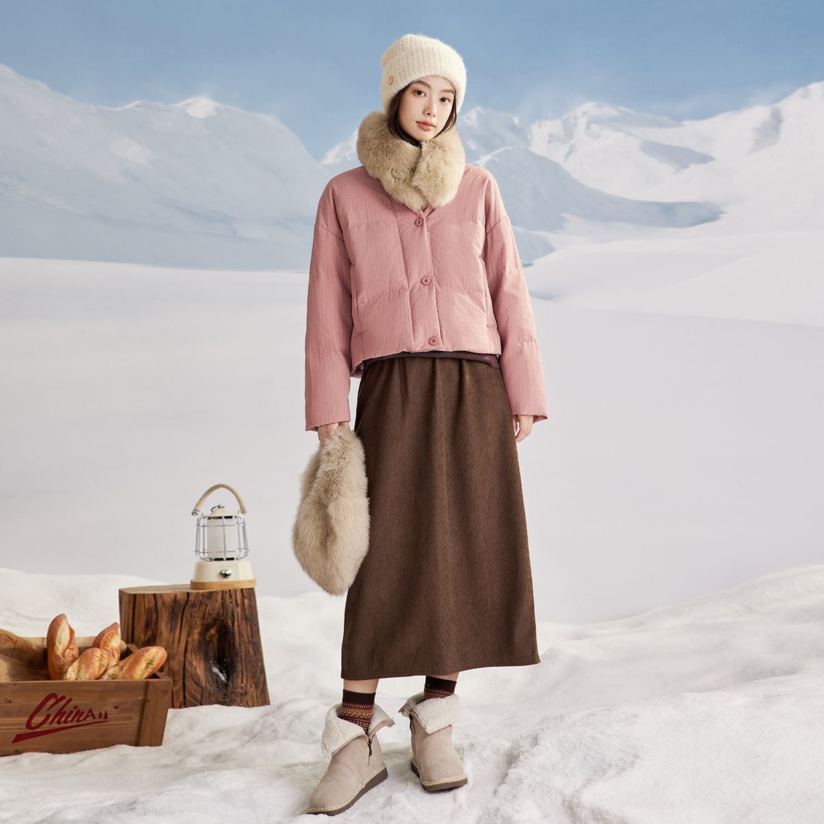 茵曼时尚保暖通勤百搭短款羽绒服女25年冬季新款百搭立领鸭绒外套