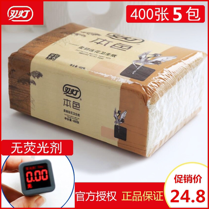 双灯卫生纸厕纸本色平板压花400张5包草纸手纸家用家庭装实惠装