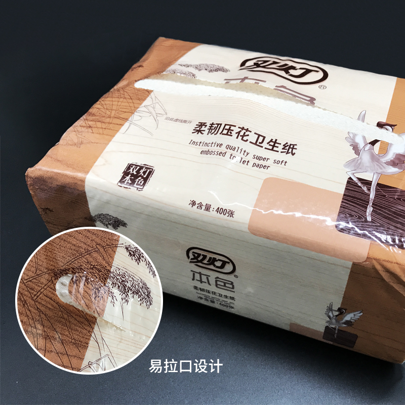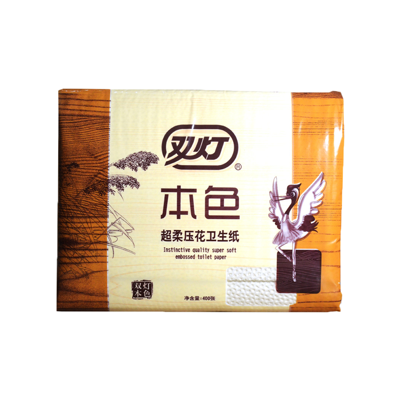 双灯卫生纸厕纸本色压花400张5包