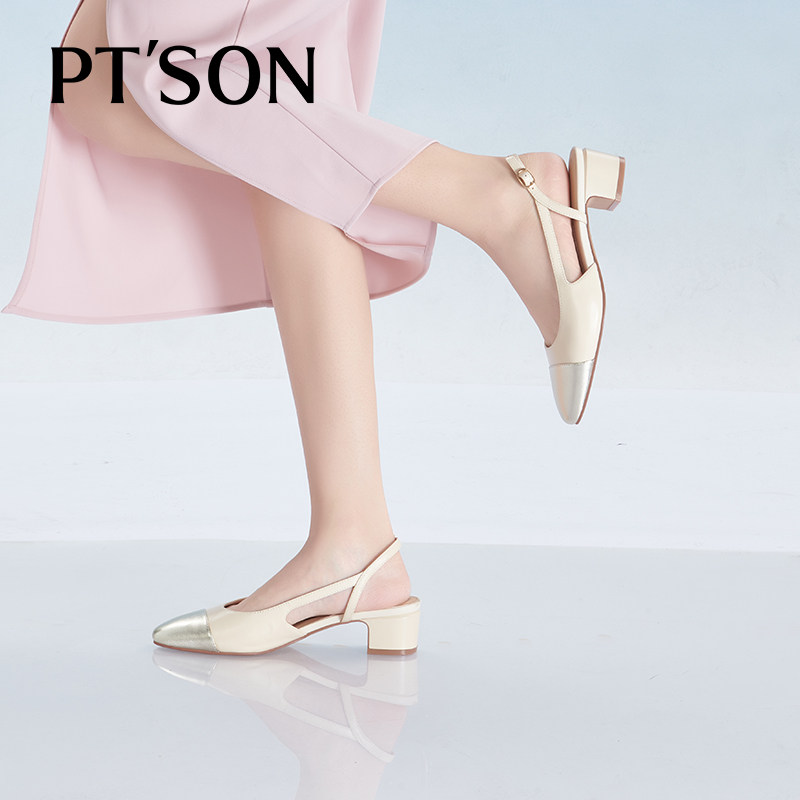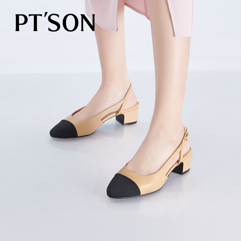 [定制小码32-33/大码40-42]百田森羊皮小香风包头凉鞋女大码女鞋