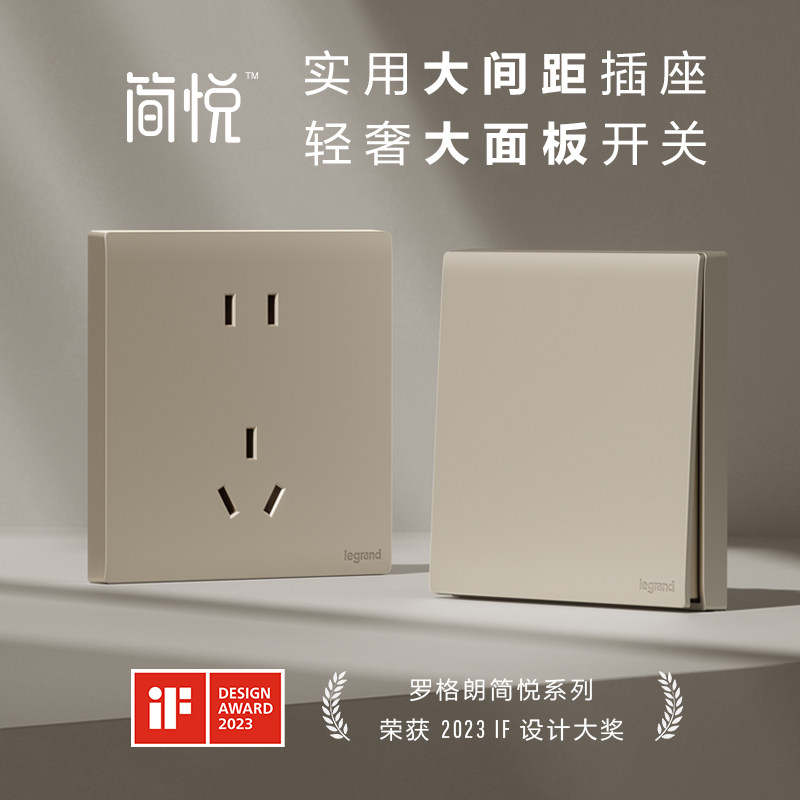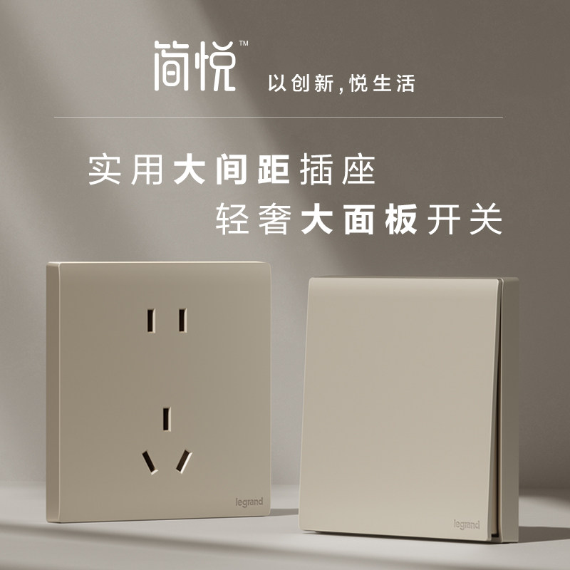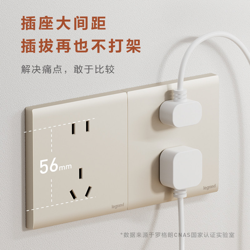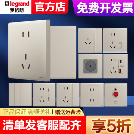 罗格朗开关插座大板哑光一开五孔家用暗装86型简悦粉铂金电视电脑