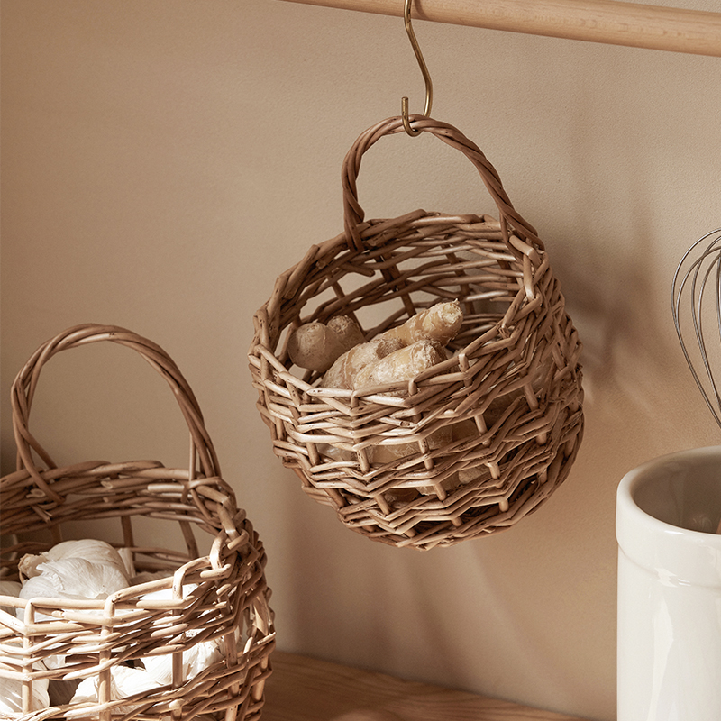 柳编姜蒜收纳筐厨房竹编篮蒜头复古壁挂篮手提编织小花篮藤编挂篮