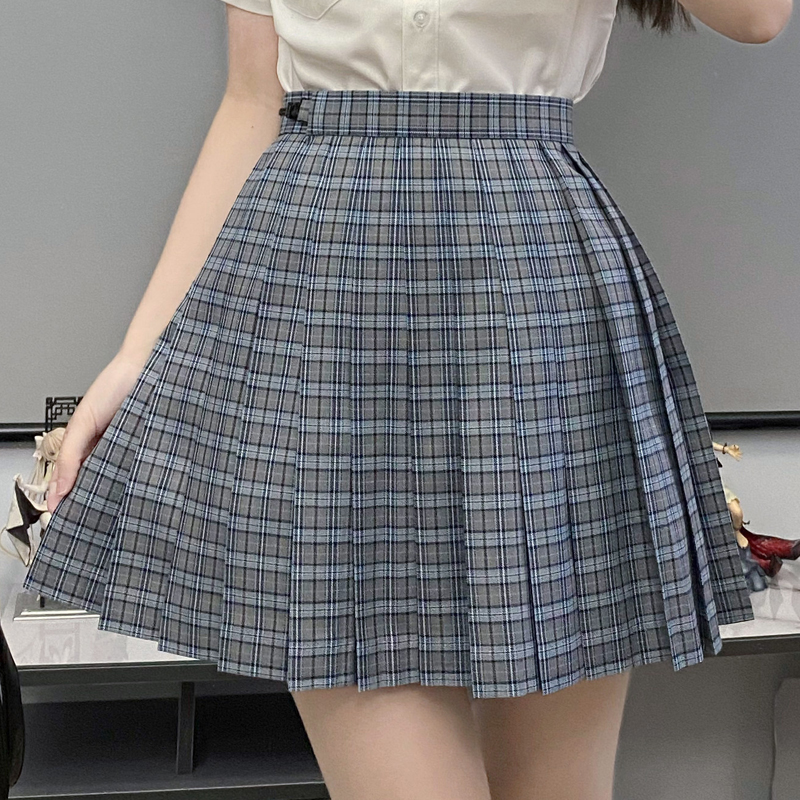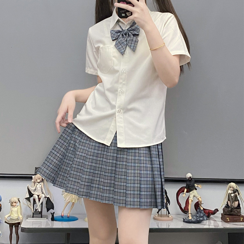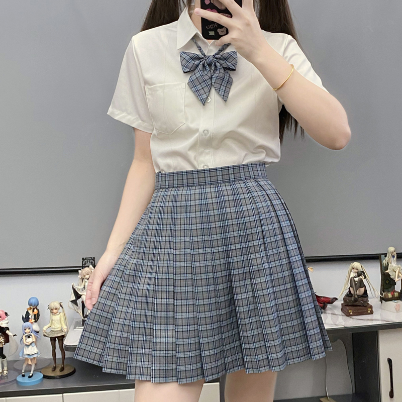 江篱日系学院风今年流行高级衬衫短袖学生班服收腰格子百搭百褶裙