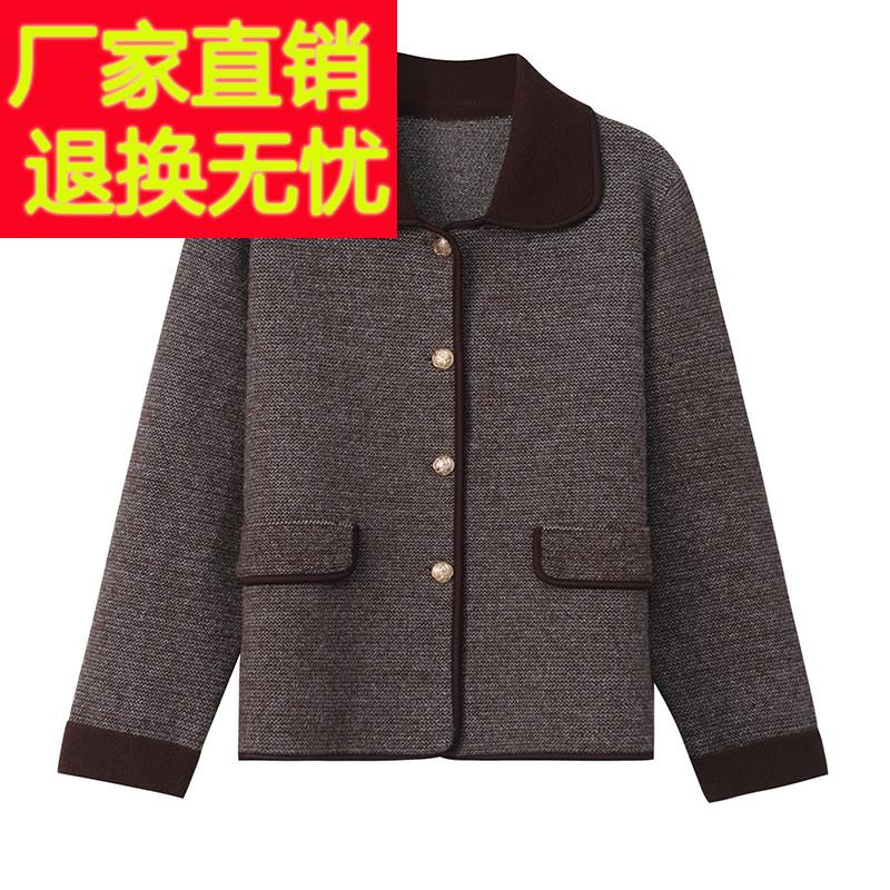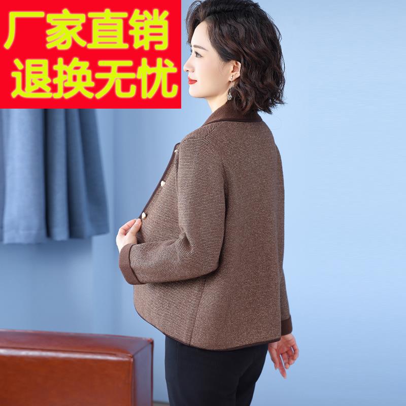 中年妈妈春装外套2025新款短款夹克中老年女装春秋小香风针织上衣