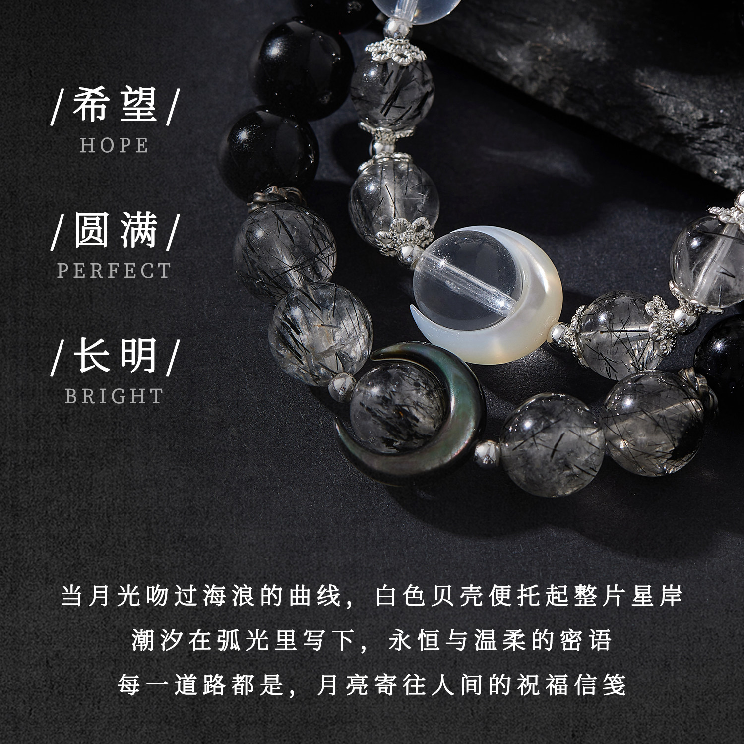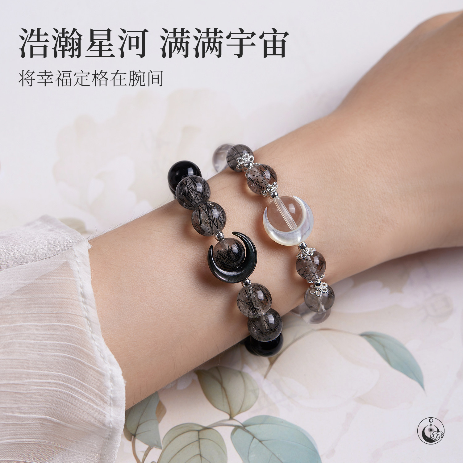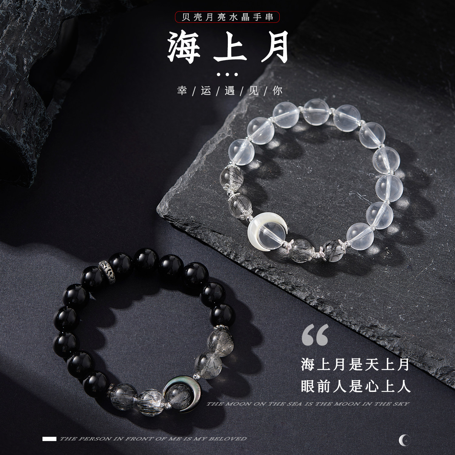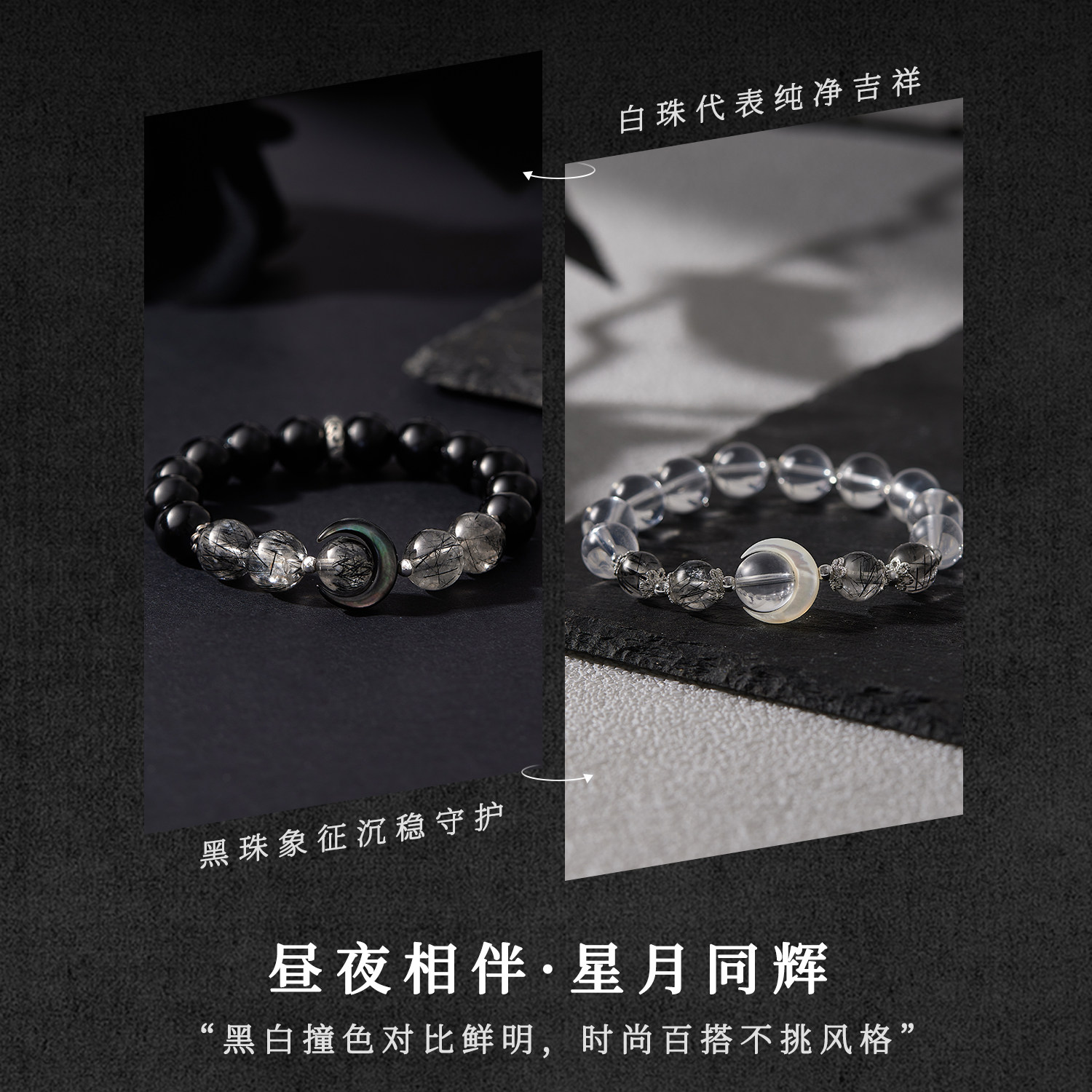 月亮情侣白水晶手链女轻奢精致黑彩曜石手串宝石情人节生日礼物