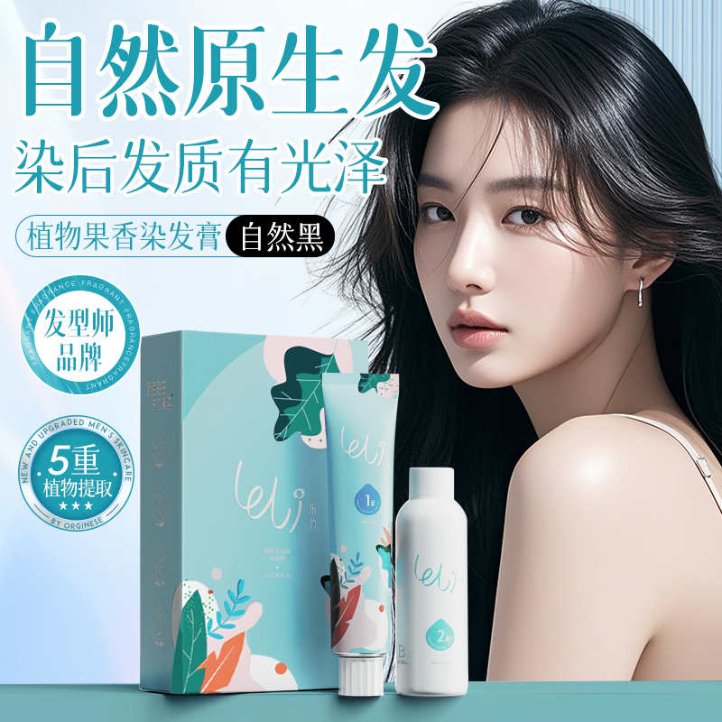 乐力黑色染发剂膏黑茶色植物天然无刺激纯泡泡自然黑染头发膏正品