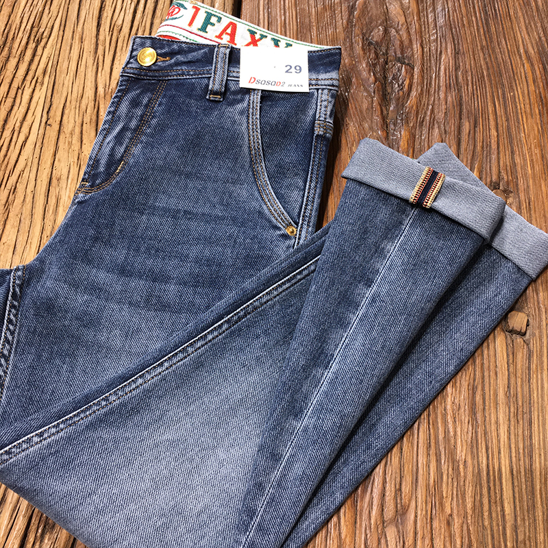 裤腰印花牛仔裤男款春季新款高端潮牌弹力修身小脚九分裤夏季薄款
