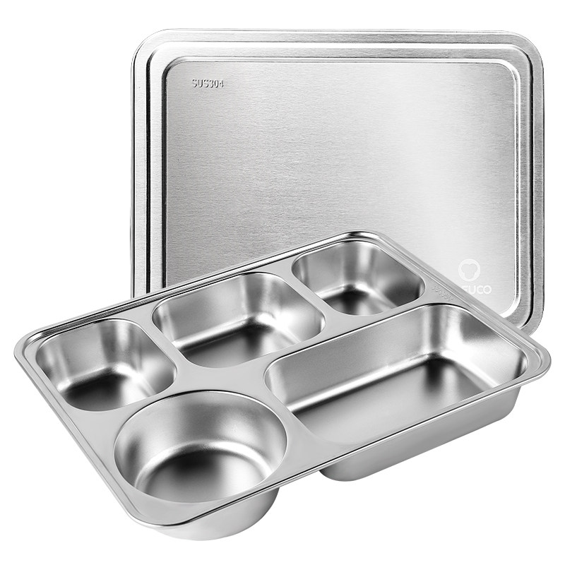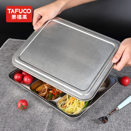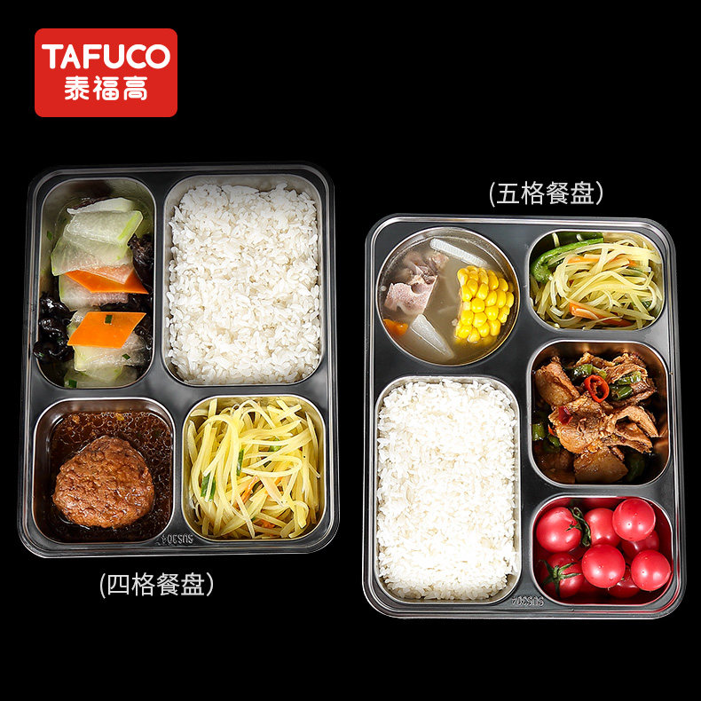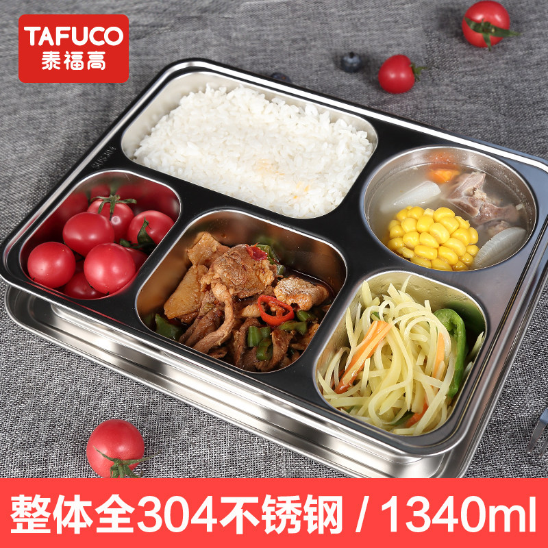 日本泰福高食堂餐盘加厚304不锈钢3/4隔学生饭盒大容量5格便当盒