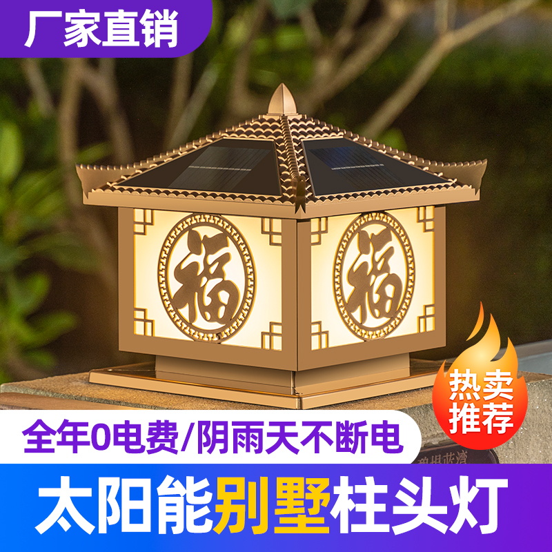 2024年新款太阳能柱头灯围墙庭院别墅户外防水室外大门柱子墙头灯