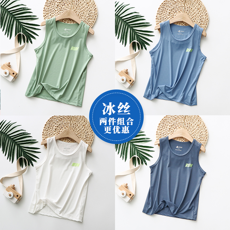 男童背心夏季薄款速干冰丝儿童潮中大童运动白色无袖t恤吊带