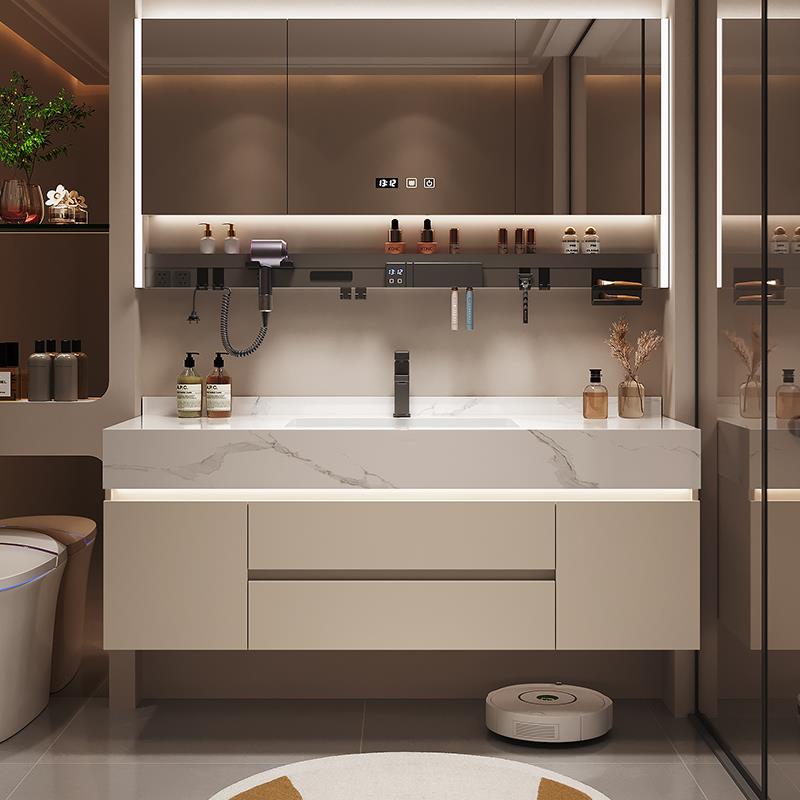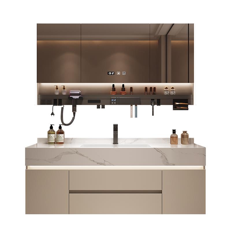 轻奢浴室柜岩板无缝陶瓷盆卫生间洗手洗漱台洗脸盆柜组合卫浴定制
