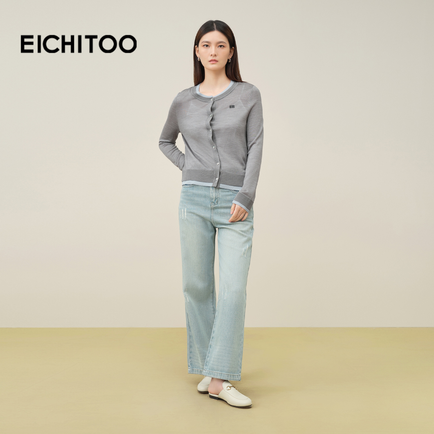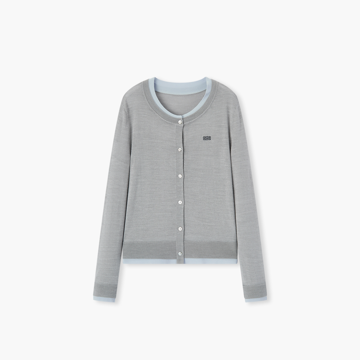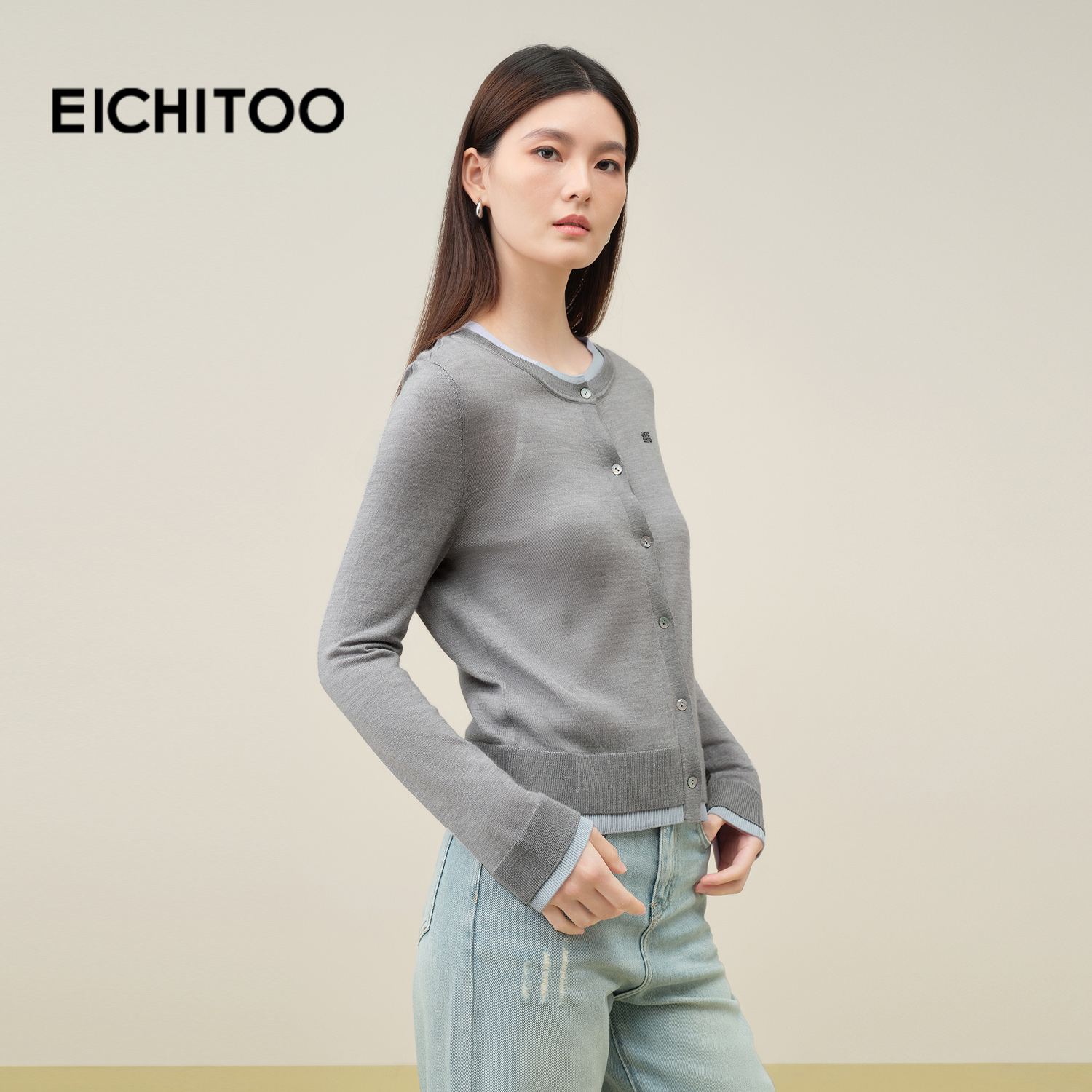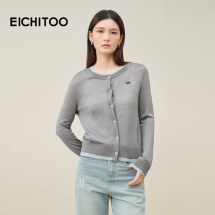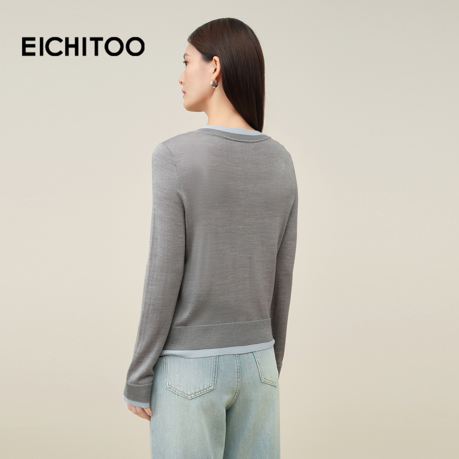 爱居兔绵羊毛假两件针织开衫女2025年秋季新款高智气质上衣外套