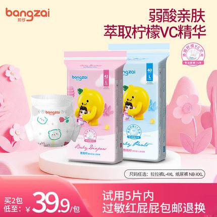 邦仔柠檬VC纸尿裤拉拉裤nb码m码xl码婴儿宝宝超薄透气干爽尿不湿