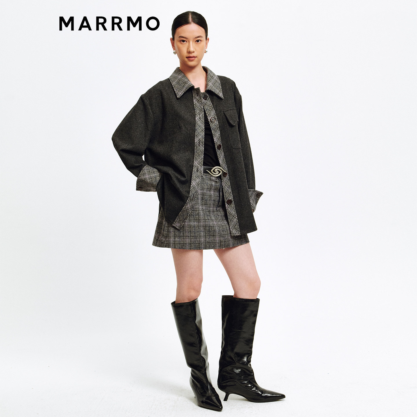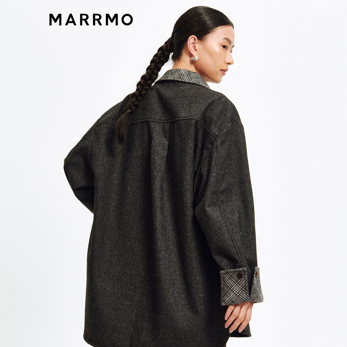 MARRMO/马髦格子拼接磨毛衬衫
