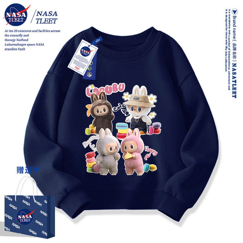 NASA联名潮牌衣服女童加绒卫衣男童中大童装春秋装儿童上衣亲子