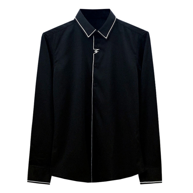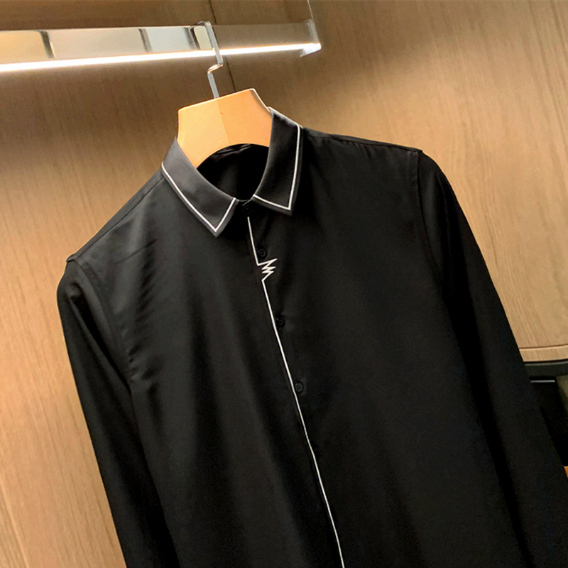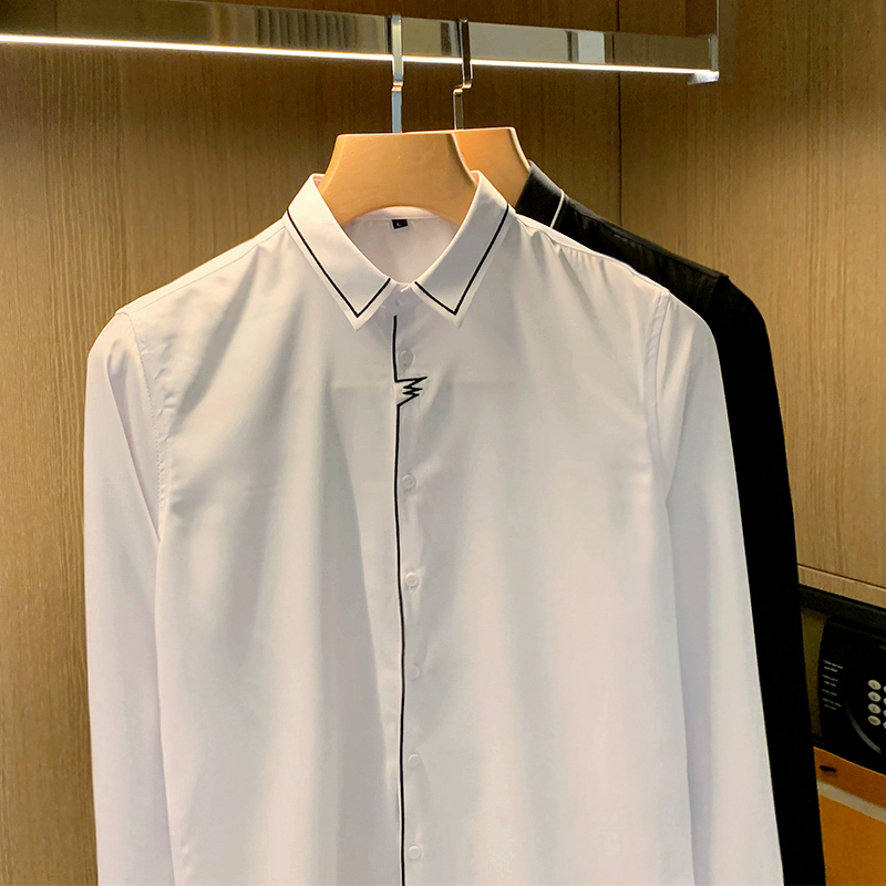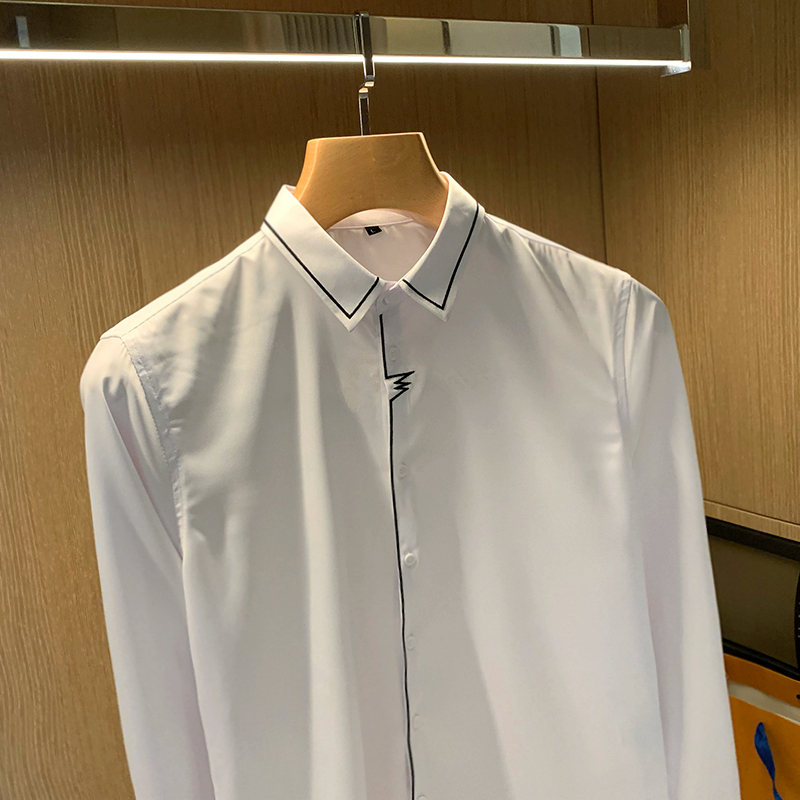 时尚高级白色修身男士长袖衬衫秋冬商务绅士风帅气刺绣设计衬衣男