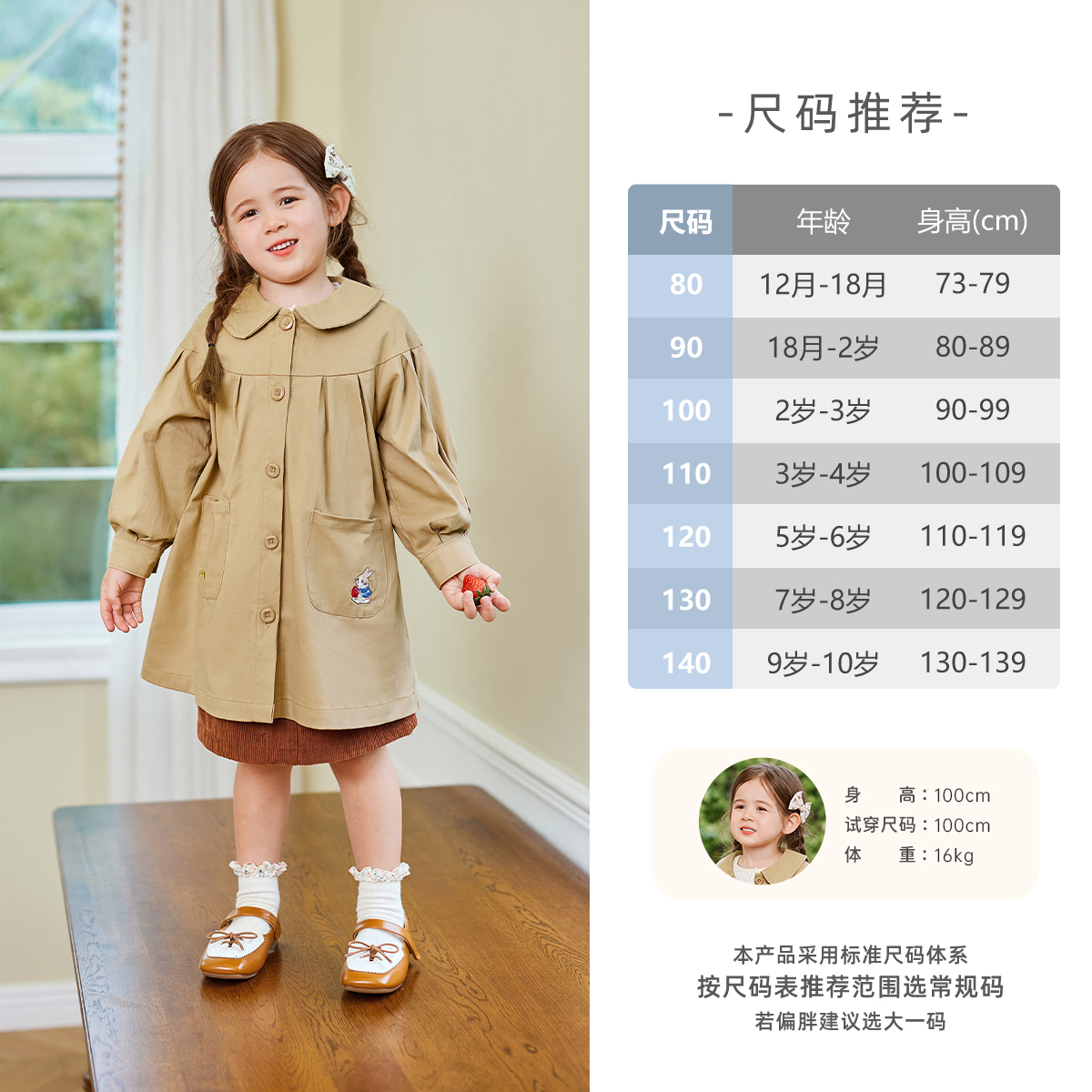 [7A抗菌]女童风衣女宝宝秋装洋气英伦风衣服四岁童装秋季儿童外套