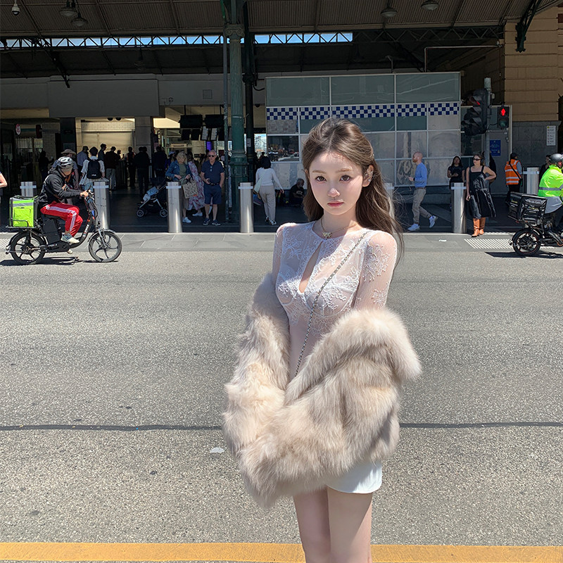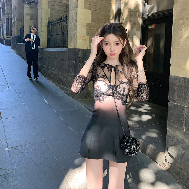你的懒懒llan【她很漂亮】双色性感重工蕾丝裙镂空设计连衣裙女