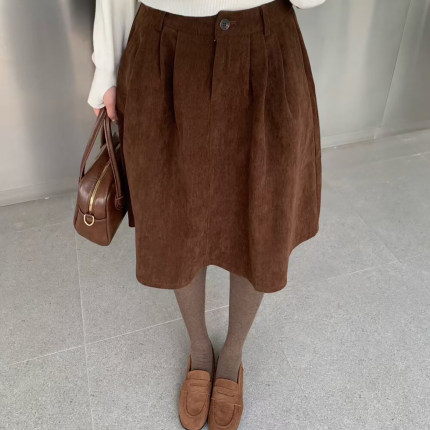 巨好看英伦a字半身裙梨型身材遮胯韩系复古气质灯芯绒超好看裙子