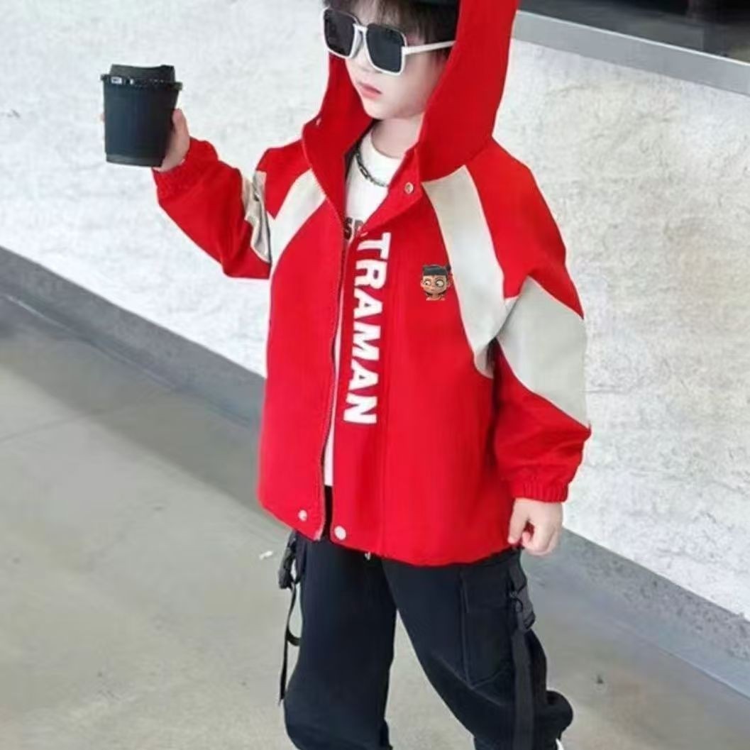 男童春季外套连帽儿童哪吒夹克春秋款2025新款宝宝洋气薄款上衣服