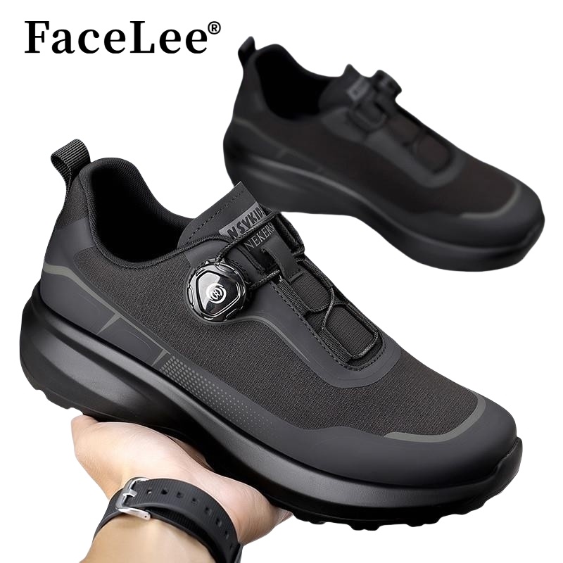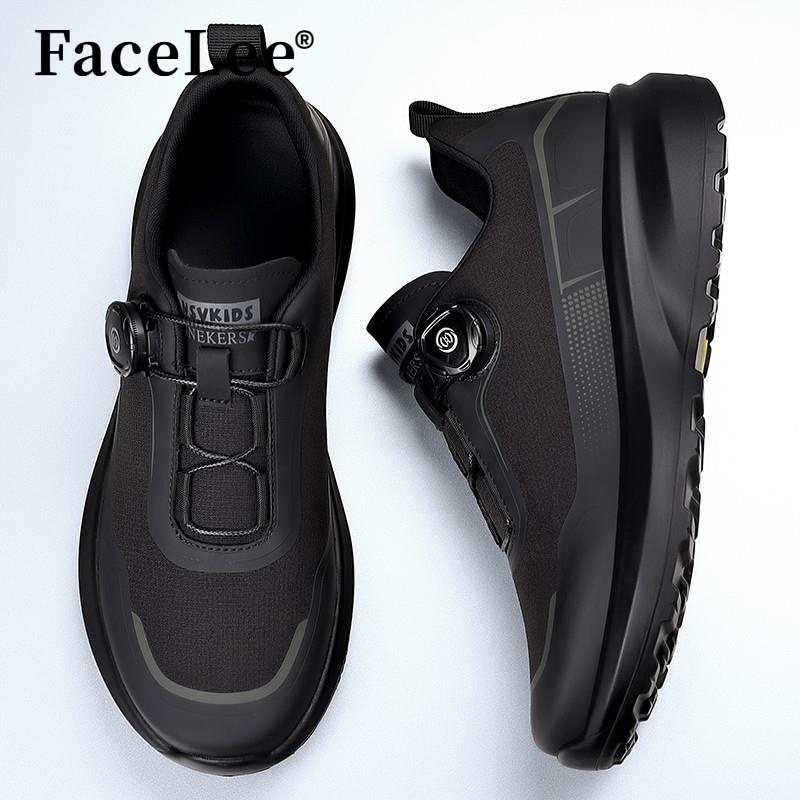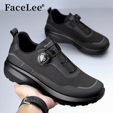 FaceLee男鞋秋季户外登山防滑黑通勤鞋旋转纽扣旅游运动休闲鞋潮