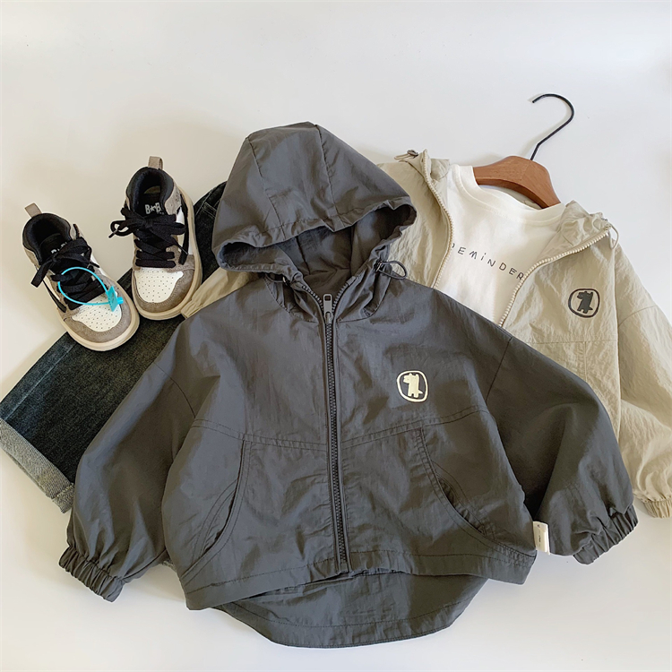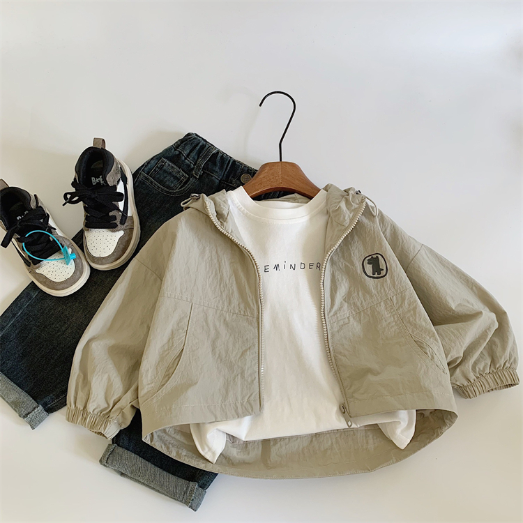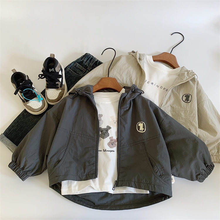 春秋季儿童韩版连帽冲锋衣外套男女童洋气夹克上衣休闲风衣外套