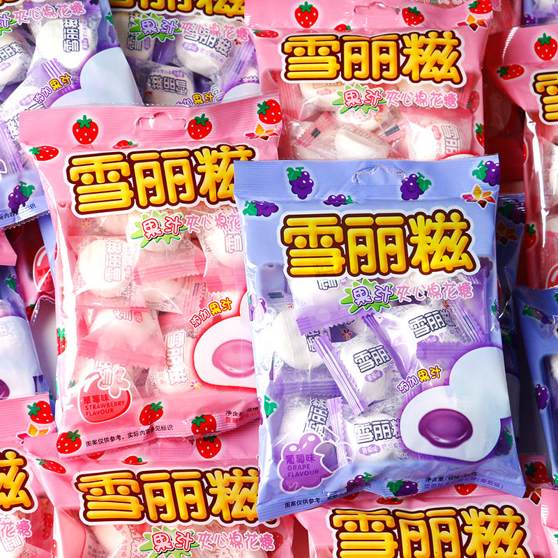 雪丽糍果汁夹心棉花糖60g*2包结婚喜糖草莓味香橙味葡萄味零食