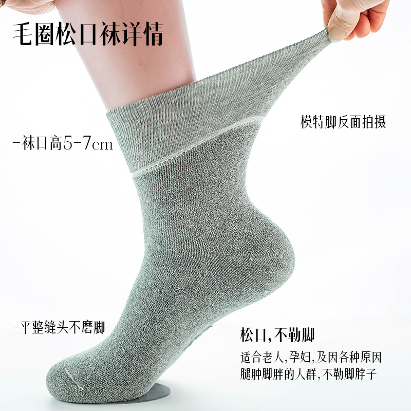 特大码松口袜子老年男中筒纯棉毛圈老人宽松女袜冬季加绒加厚保暖